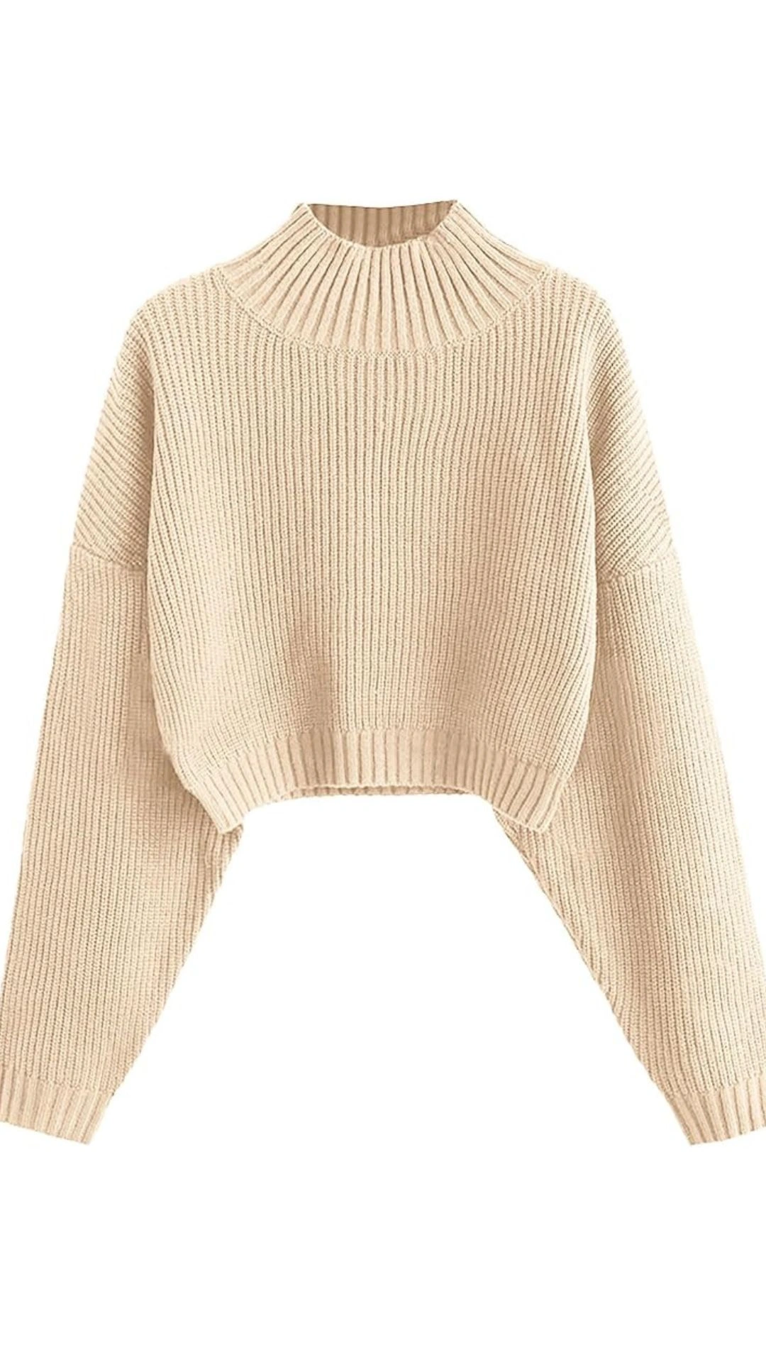 This light beige cropped sweater is the epitome of fall fashion versatility, featuring a luxurious thick ribbed texture that adds depth and visual interest to your autumn wardrobe.