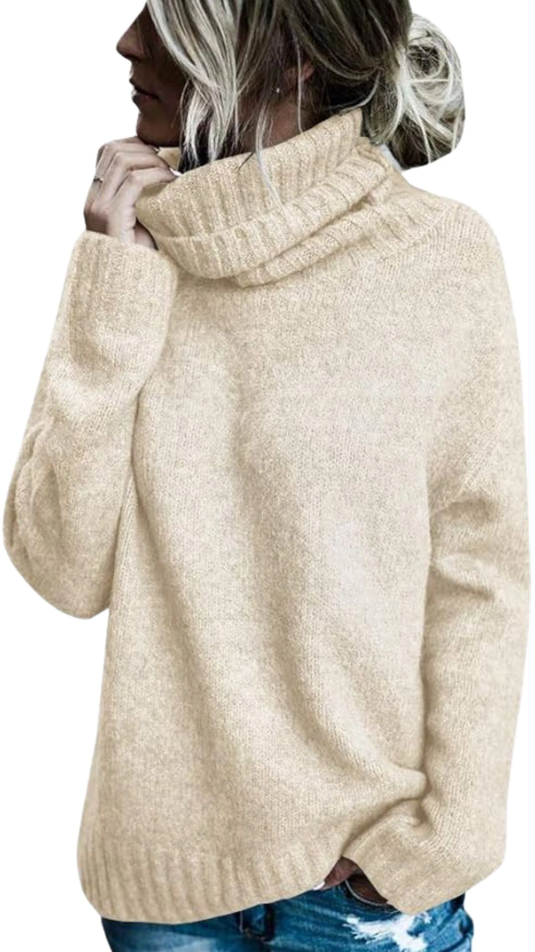 Cozy Oversized Beige Knit Turtleneck Amazon Sweater
