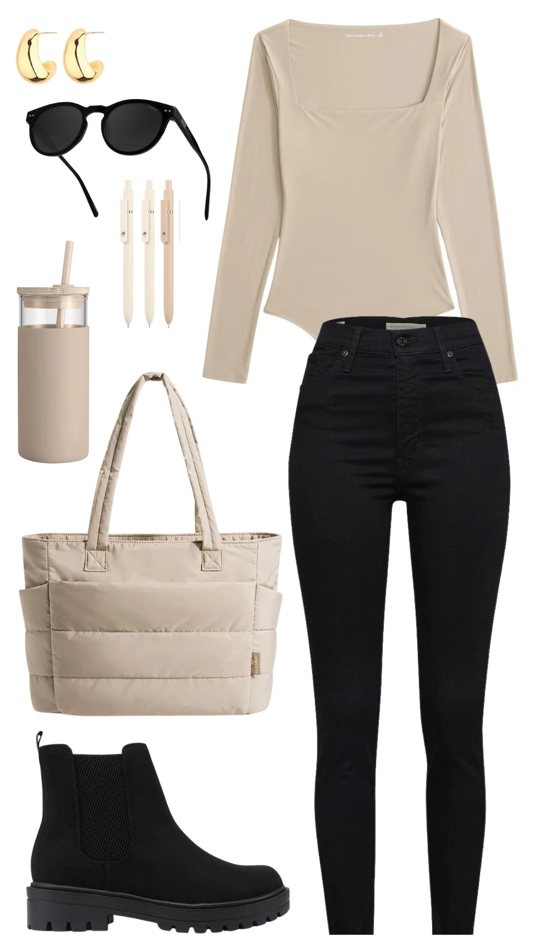 The color palette of black and beige makes it easy to mix-and-match, making this outfit a smart choice for budget-conscious students building a capsule wardrobe.