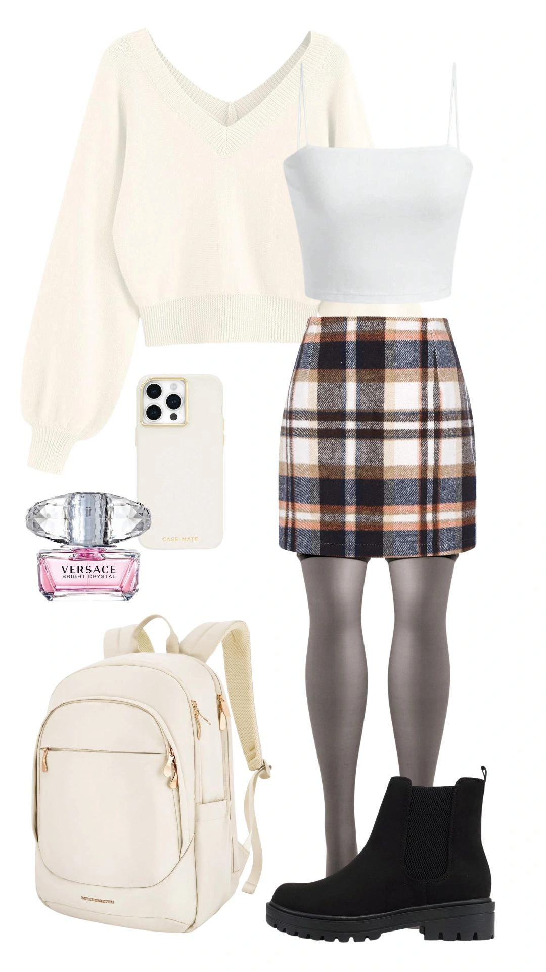 This sophisticated back-to-school outfit blends classic prep-inspired elements with modern minimalist design, creating a versatile look perfect for students who want stylish yet practical wardrobe options.