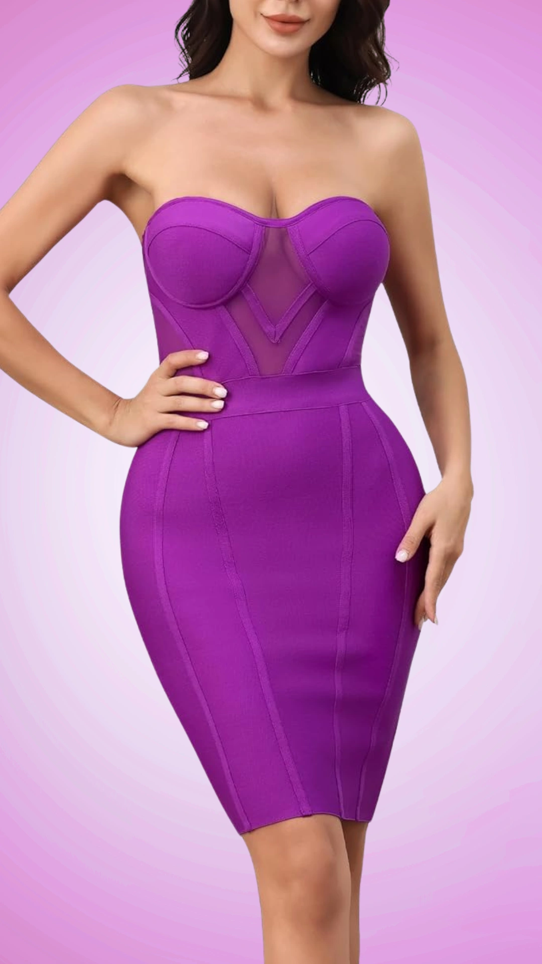 Elegant Purple Bandage Dress with Alluring Mesh Panels