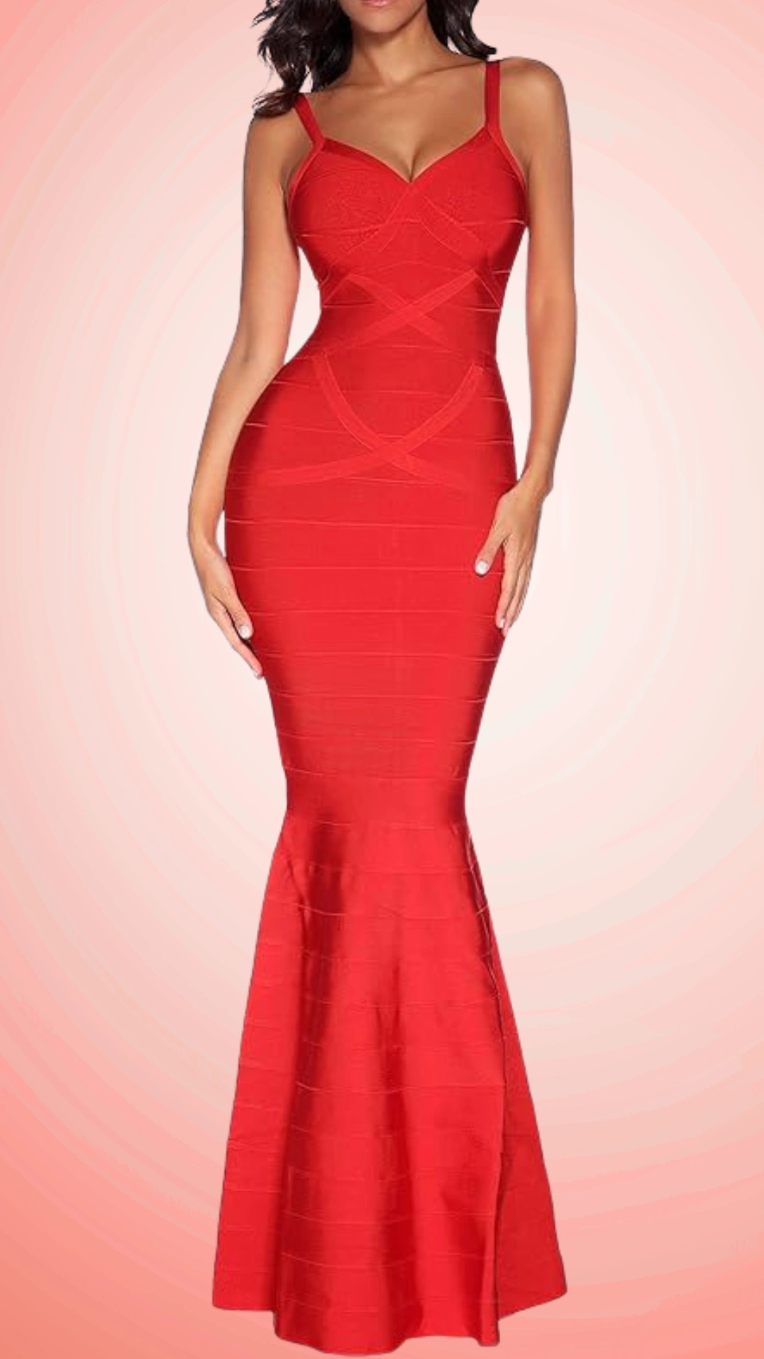 This mermaid-style red bandage dress is a perfect blend of sophistication and glam. The vibrant red hue captures attention while the textured fabric enhances your natural curves, creating a sleek silhouette.