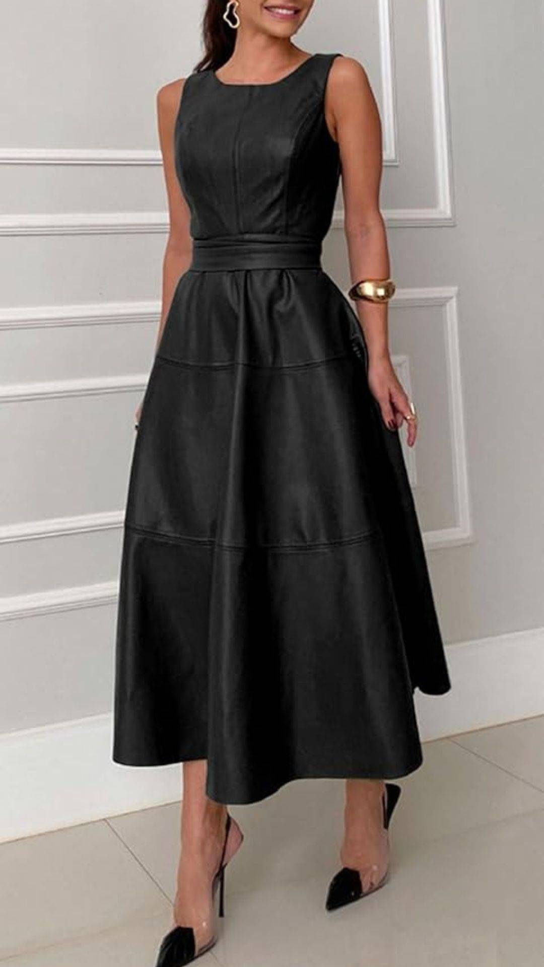 This dress is a versatile staple that embodies timeless style while offering comfort and confidence for any stylish woman.