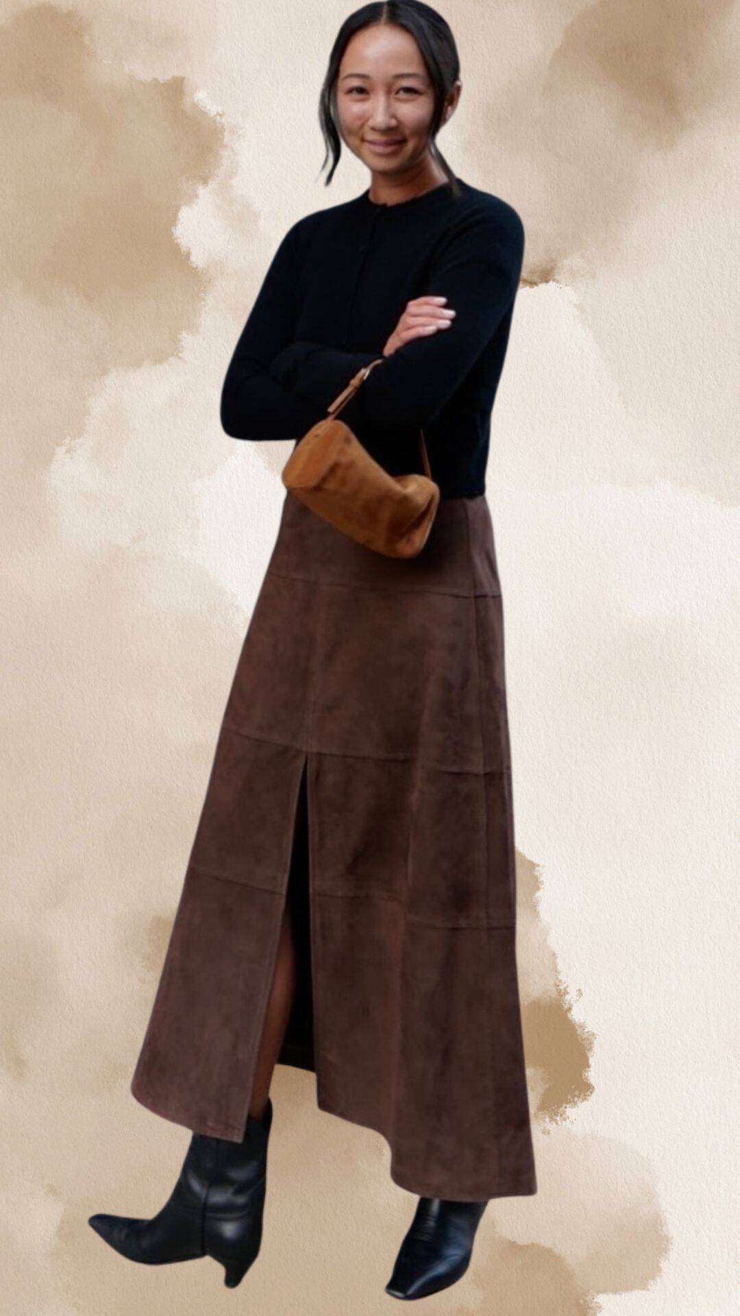 This brown suede skirt outfit is the perfect inspiration for women looking to elevate their wardrobe.