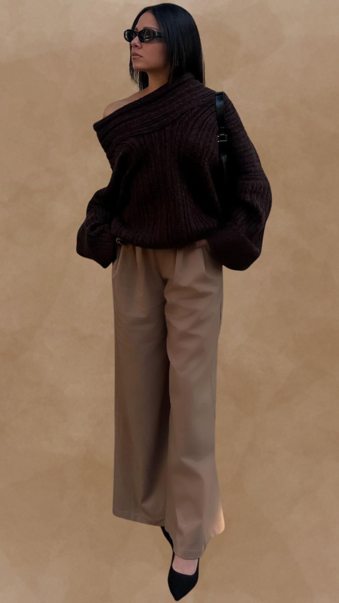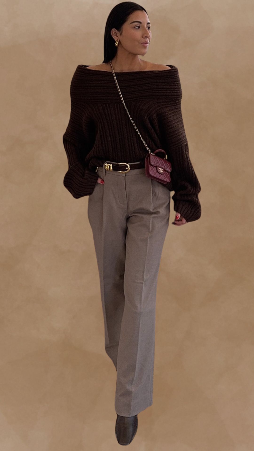 Brown Sweater Outfit With Off-the-Shoulder Style
