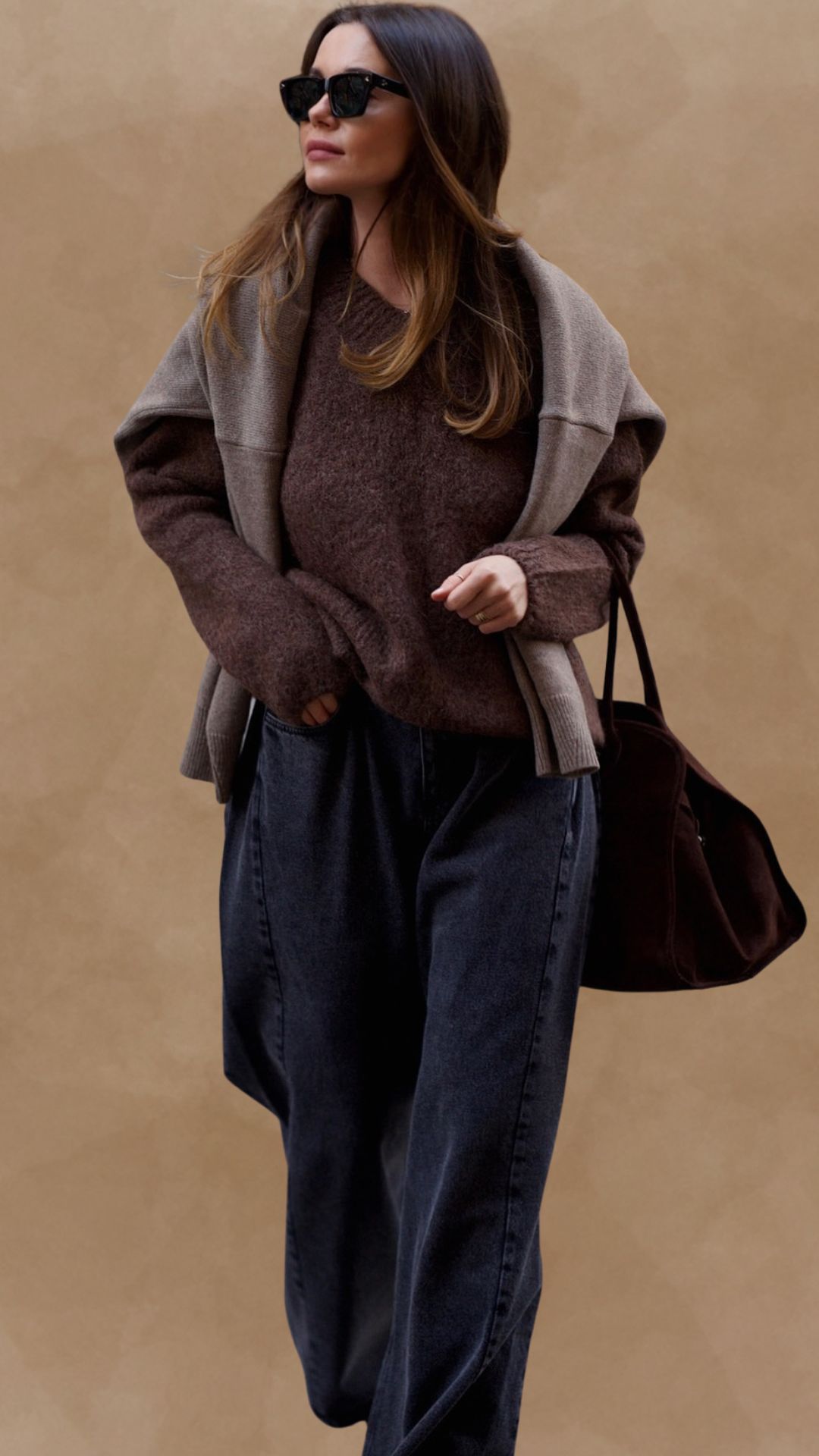 Brown Sweater Outfit With Relaxed, Oversized Sleeves