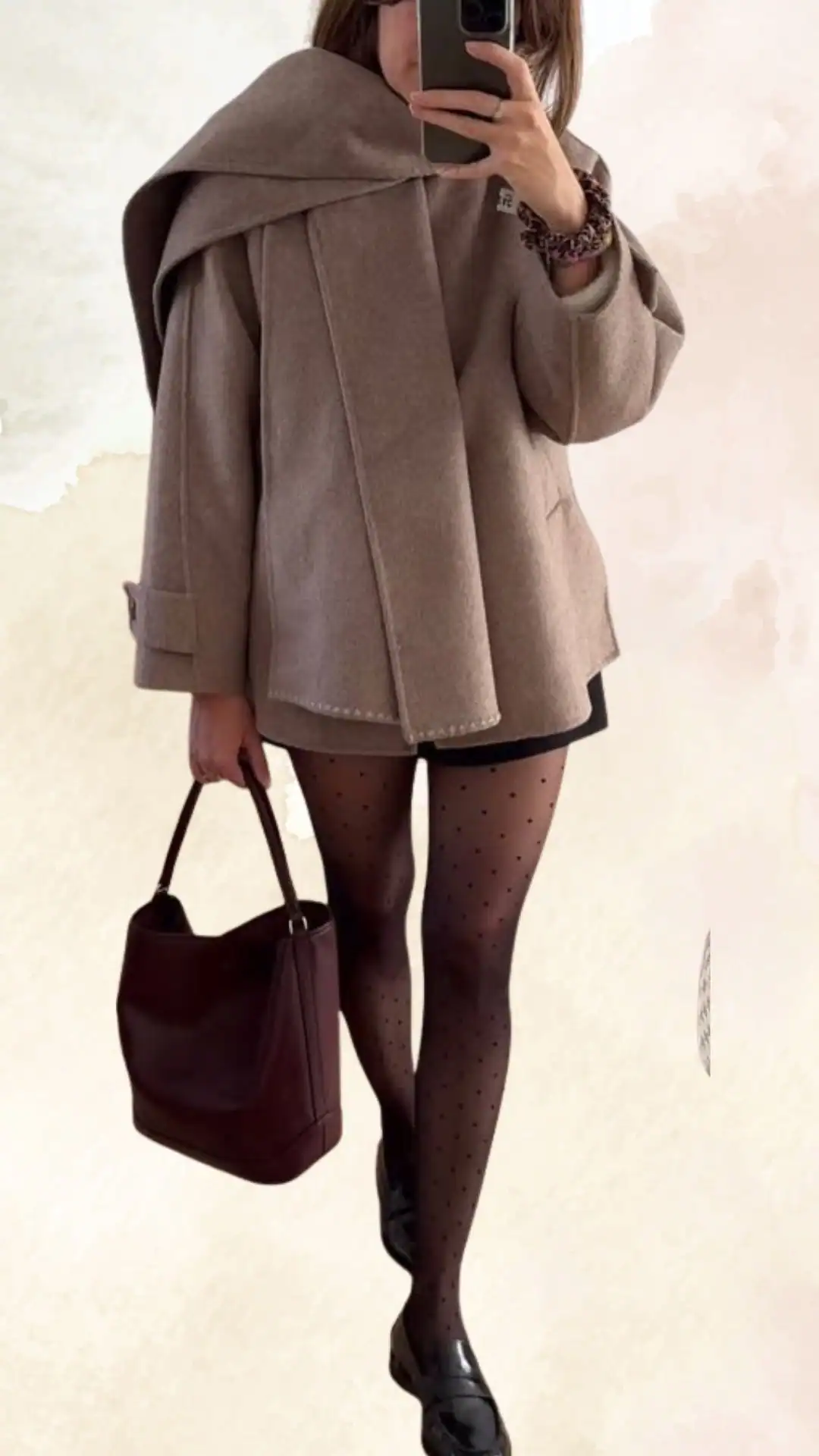 This outfit strikes a balance between casual elegance and practicality, catering to the modern woman who wants to look polished while enjoying the season’s cozy vibes.