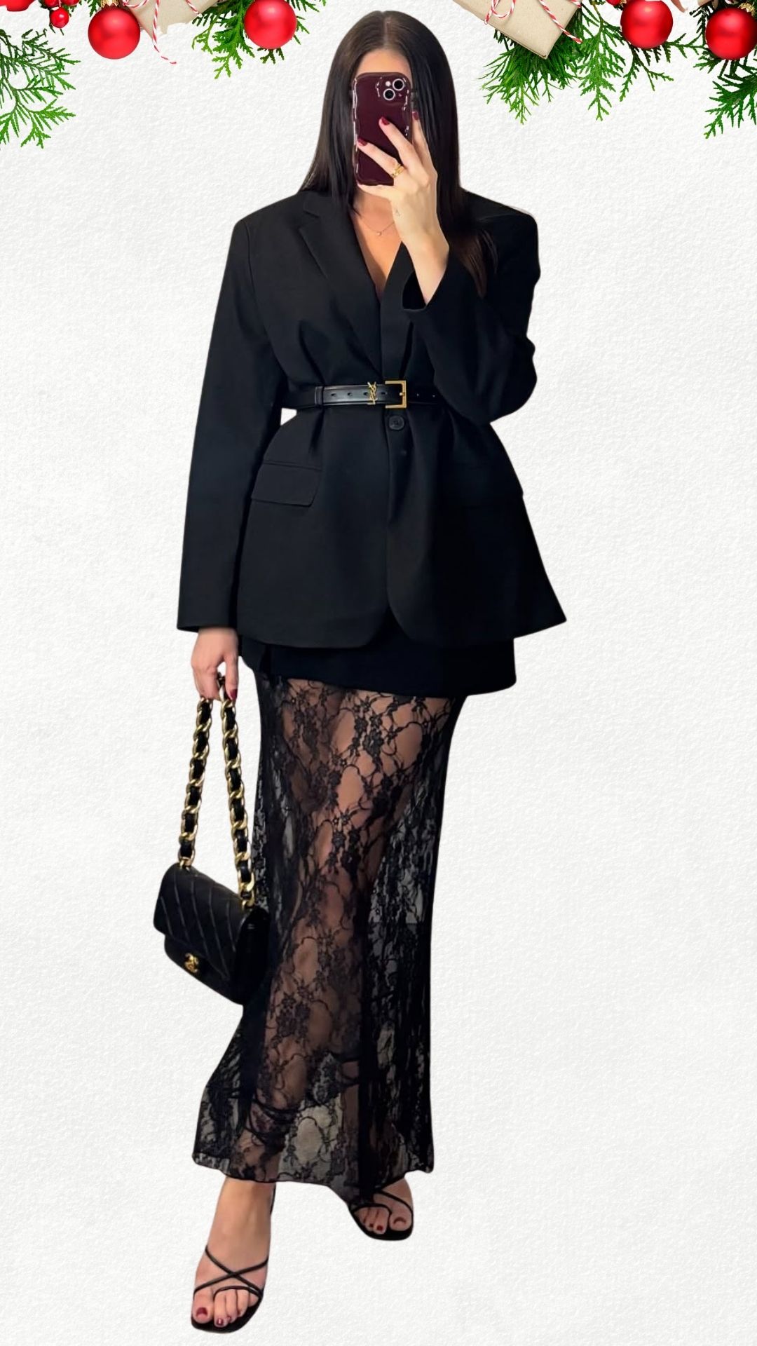 Christmas Party Outfit With Elegant Sheer Lace Detailing