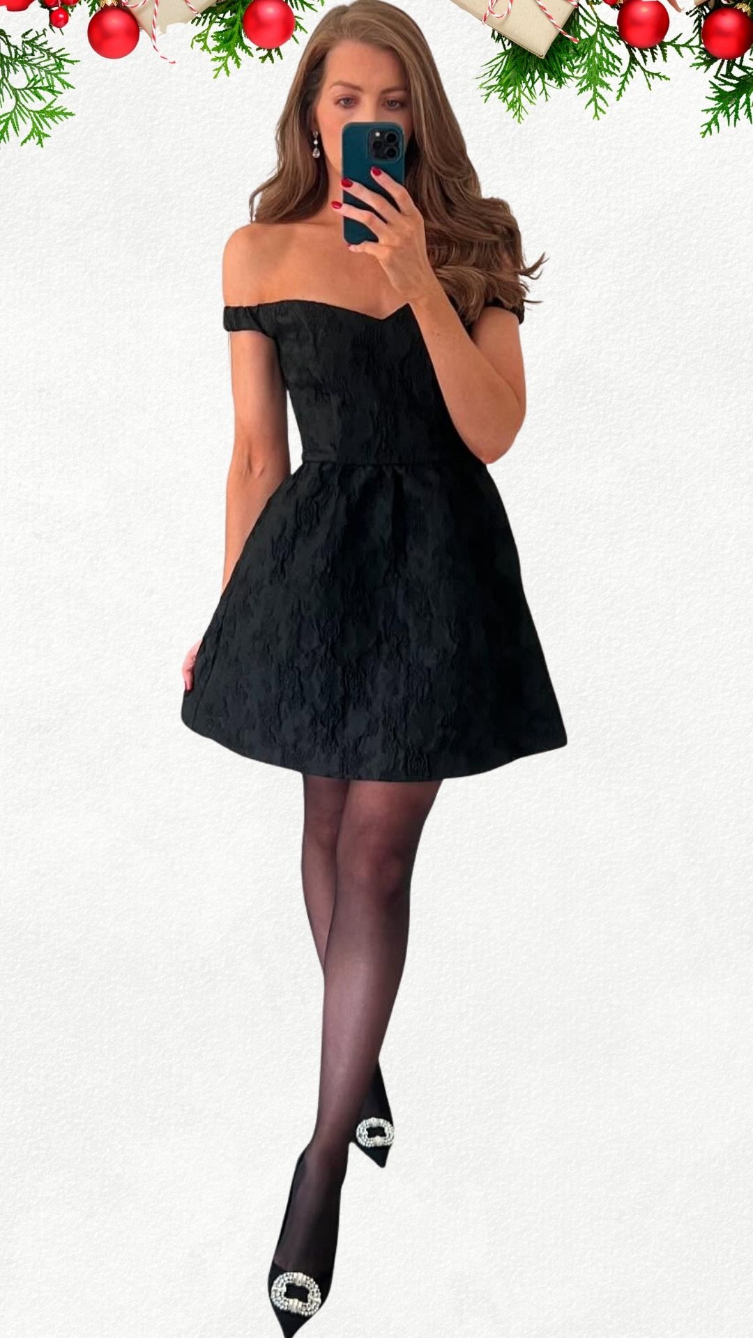 Christmas Party Outfit With Elegant Off-the-Shoulder Design