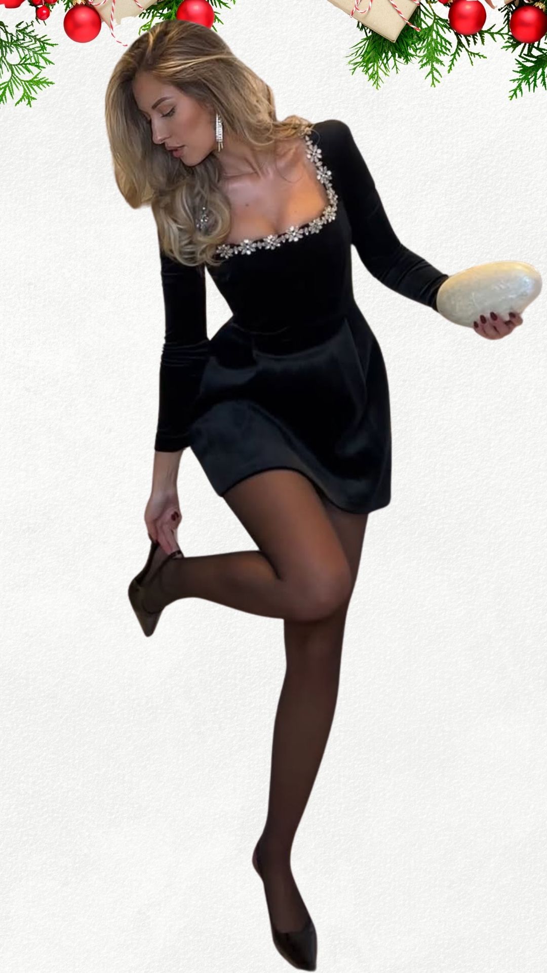 Christmas Party Outfit With Elegant Black Velvet Mini Dress