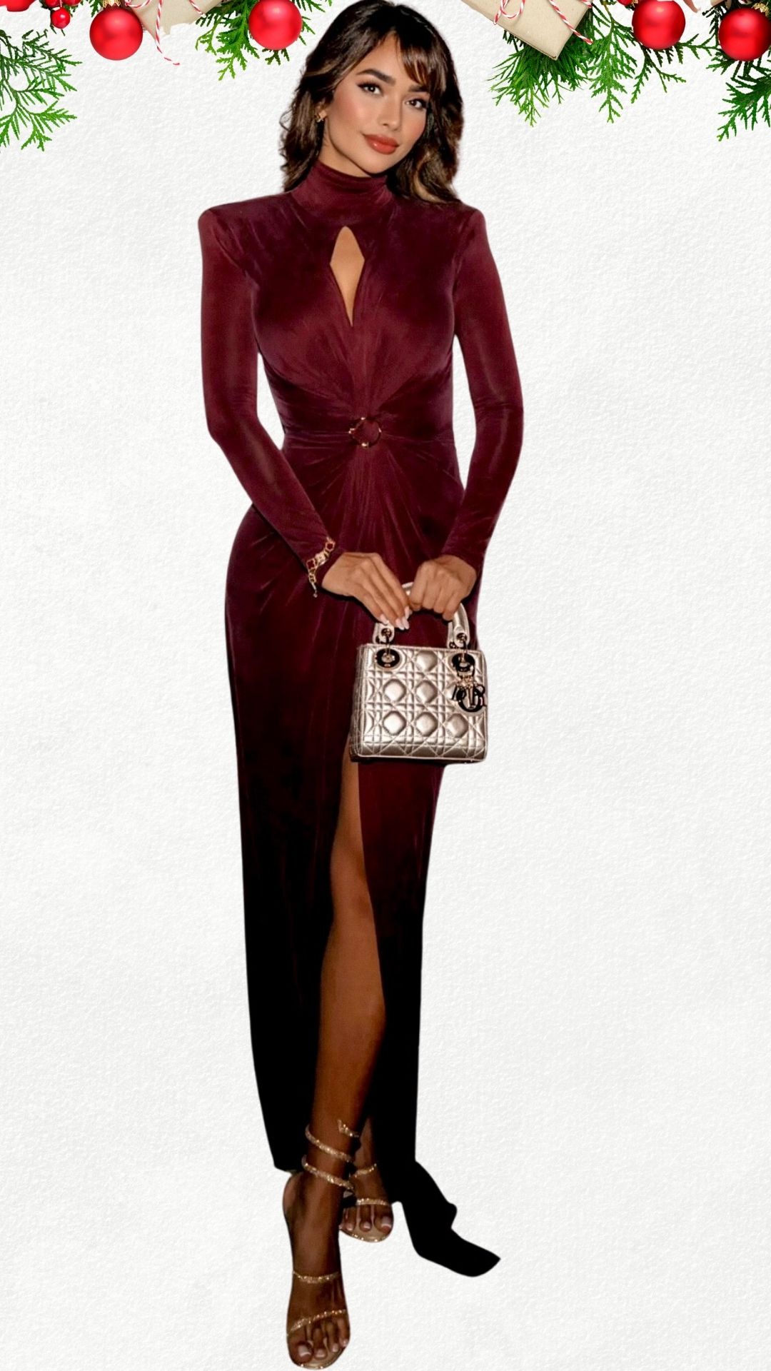 Christmas Party Outfit With Modern Cutouts in Burgundy Velvet