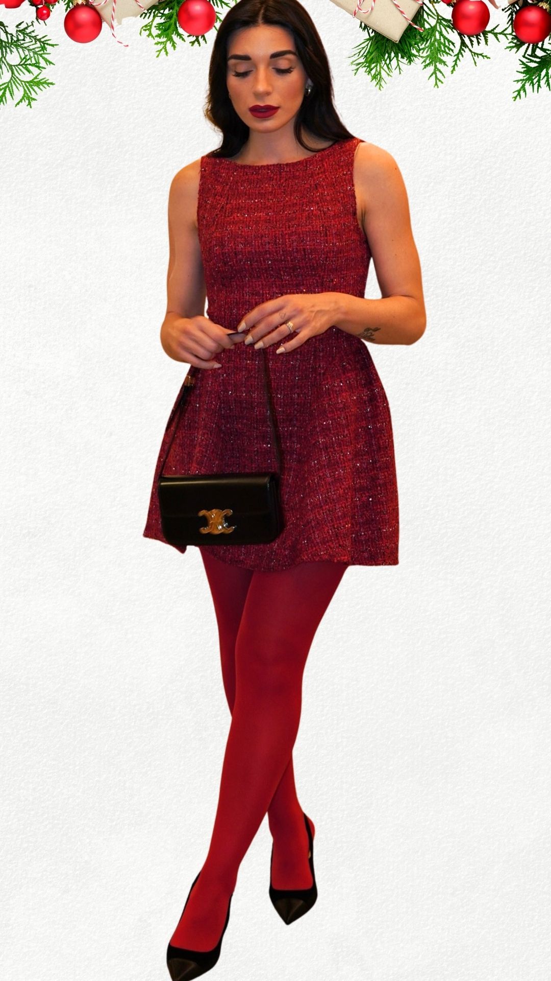 Christmas Party Outfit With Elegant Red Tweed Dress