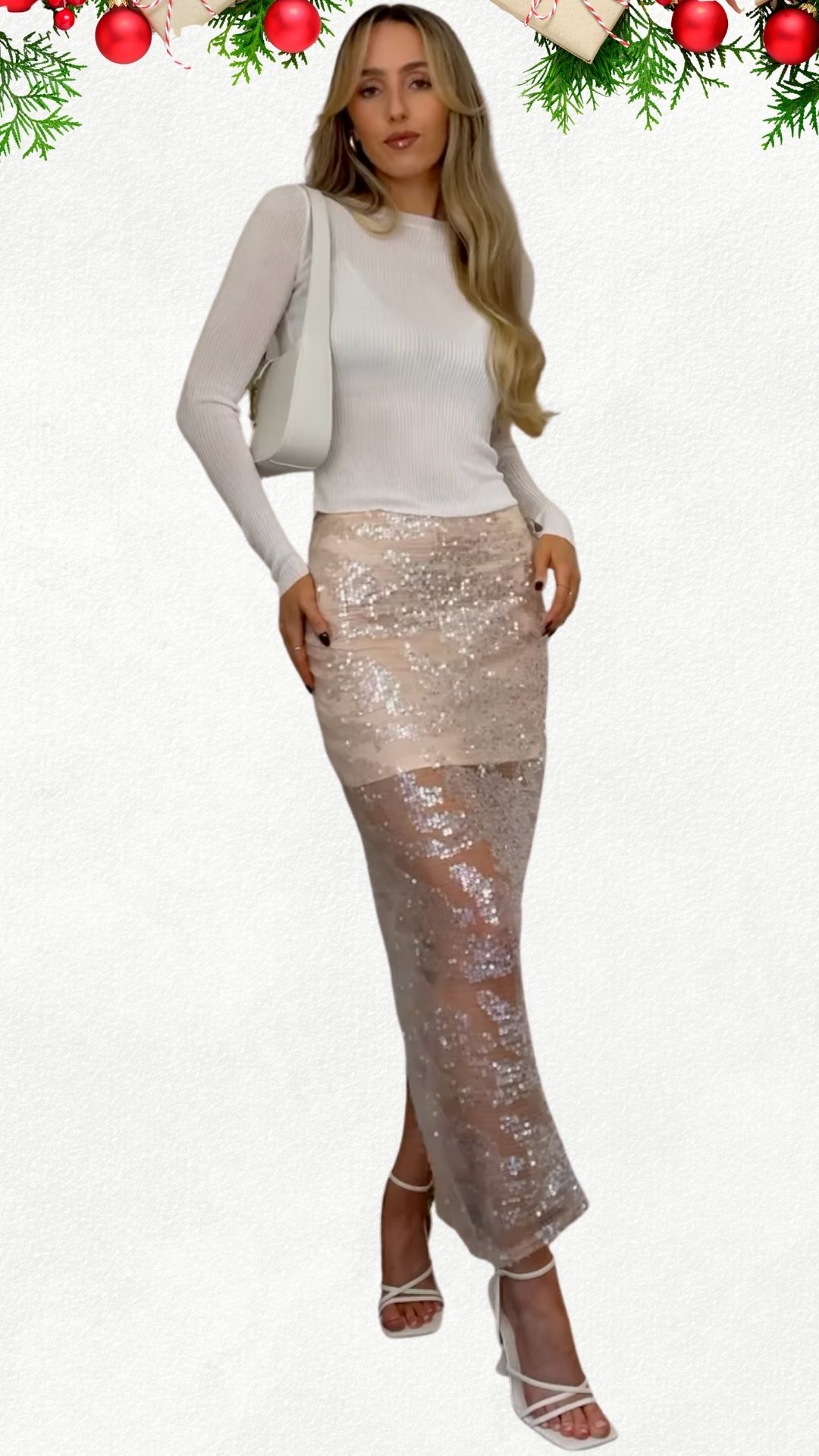Christmas Party Outfit With Stunning Sequined Wrap Skirt