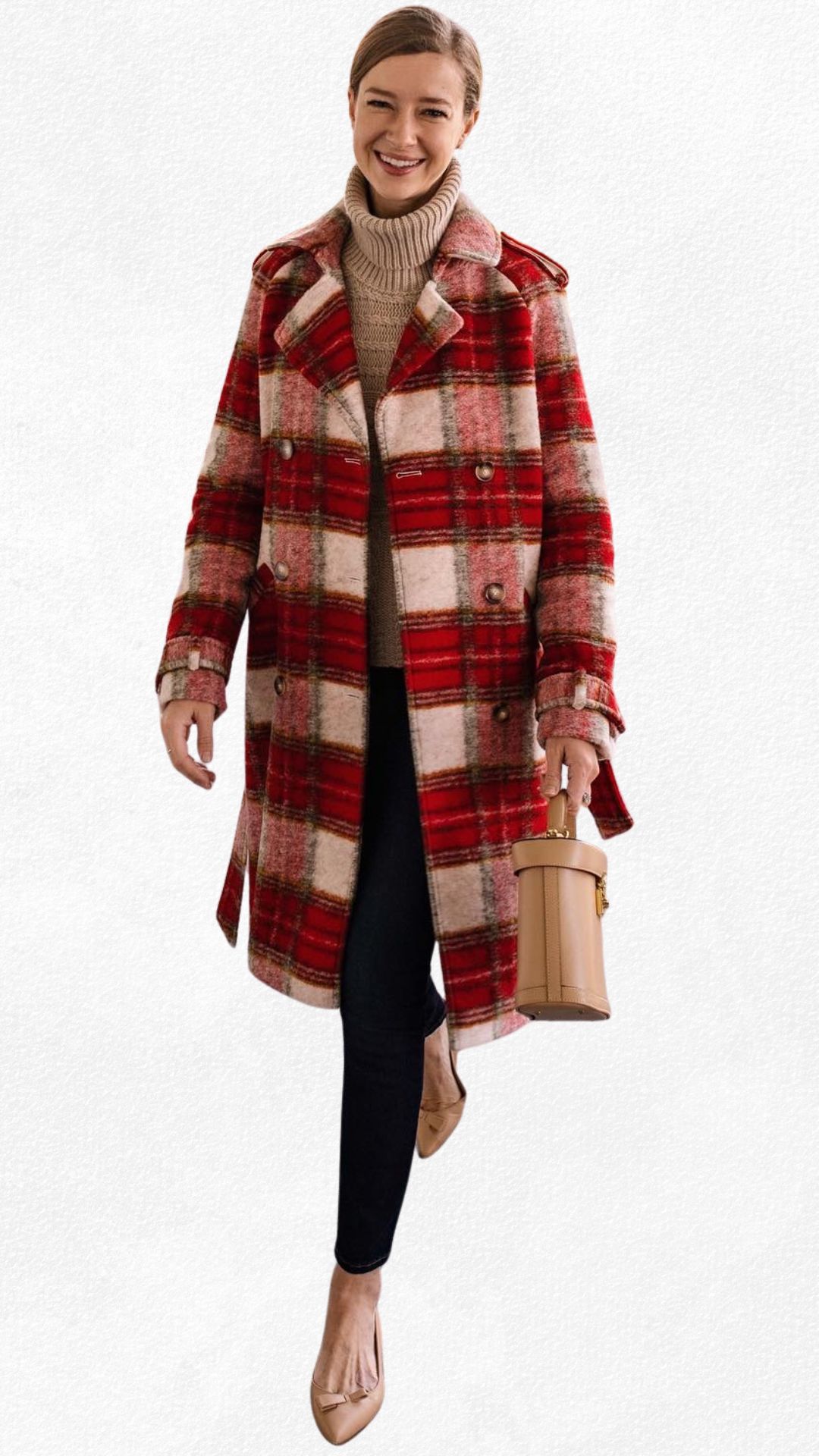 Cute Christmas Outfit With a Cozy Plaid Coat