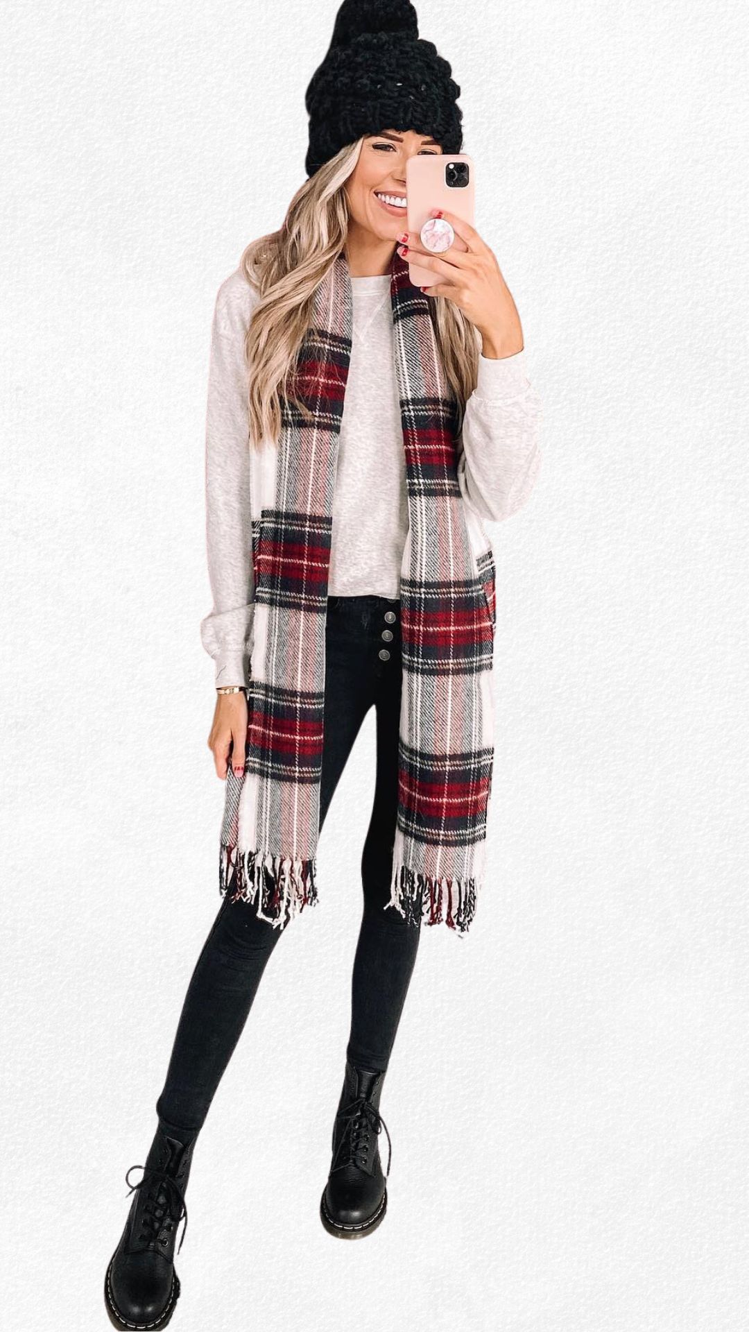 Cute Christmas Outfit With a Stylish Plaid Scarf