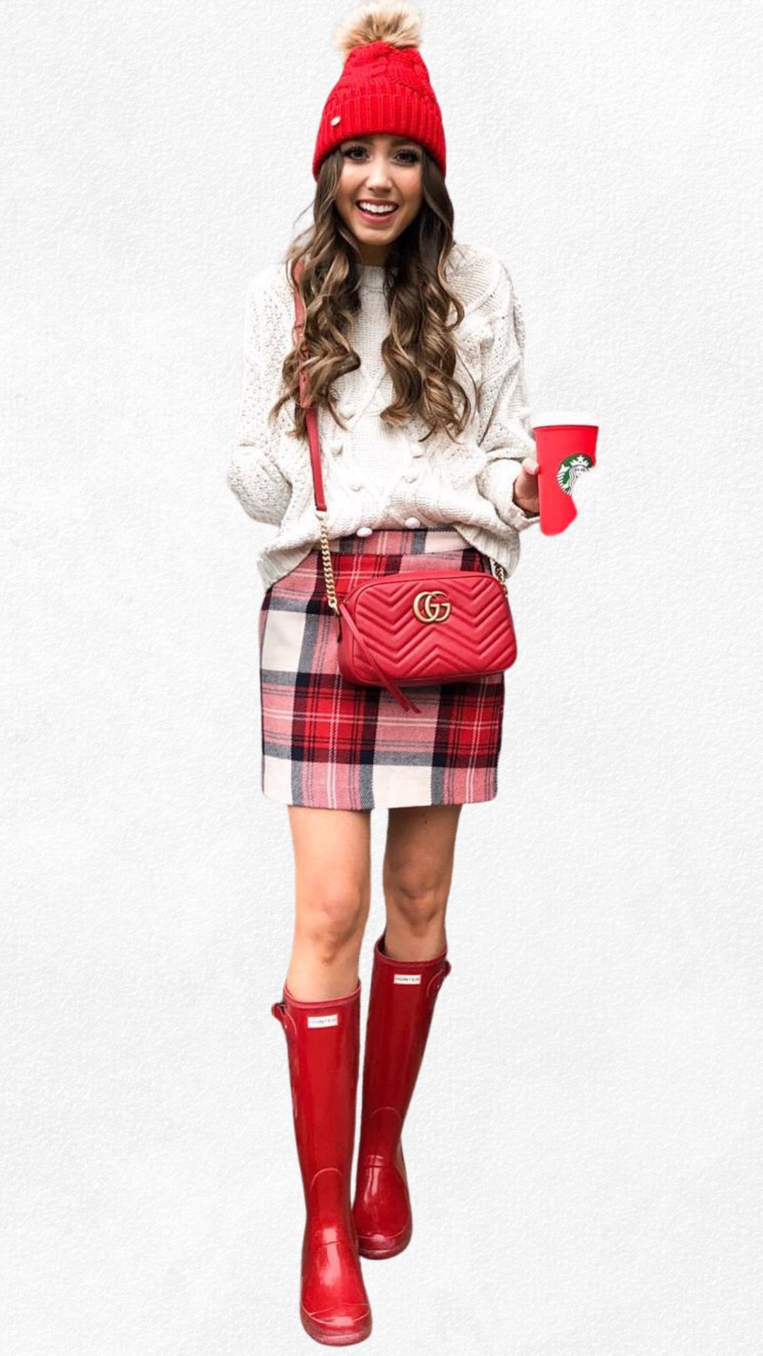Cute Christmas Outfit With a Charming Red Plaid Mini Skirt