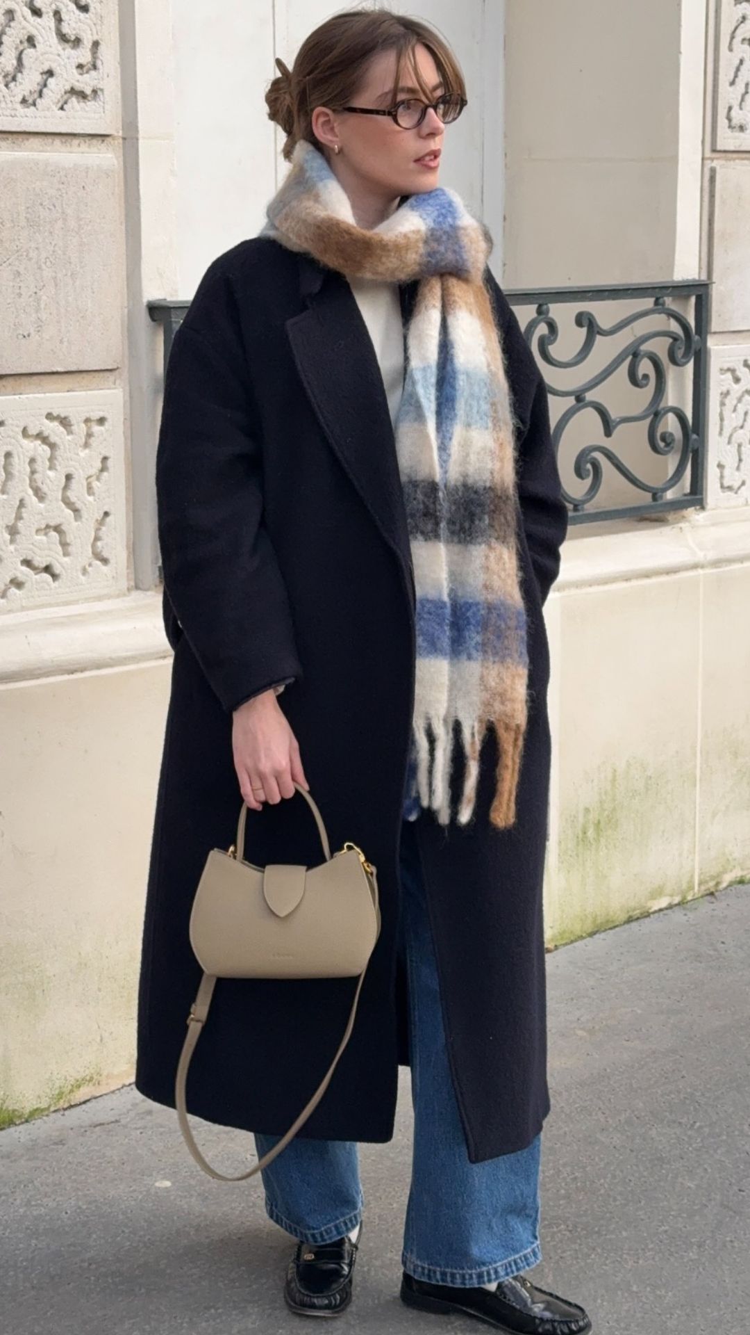 This elegant winter outfit embodies the sophisticated yet casual style synonymous with European fashion.