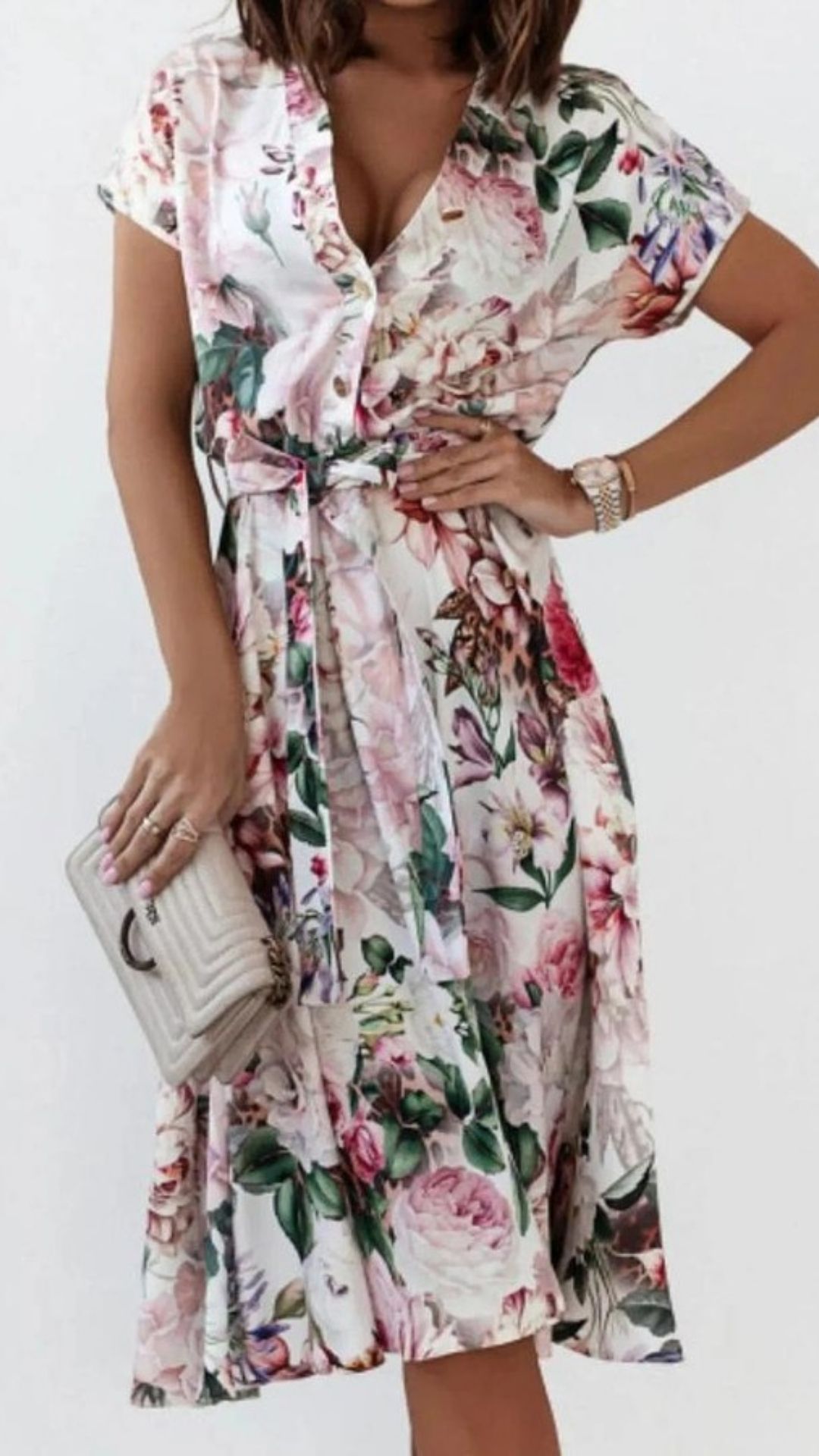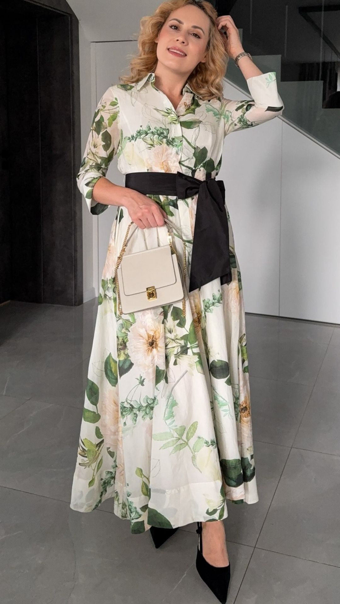 This elegant floral dress seamlessly combines sophistication and effortless charm.
