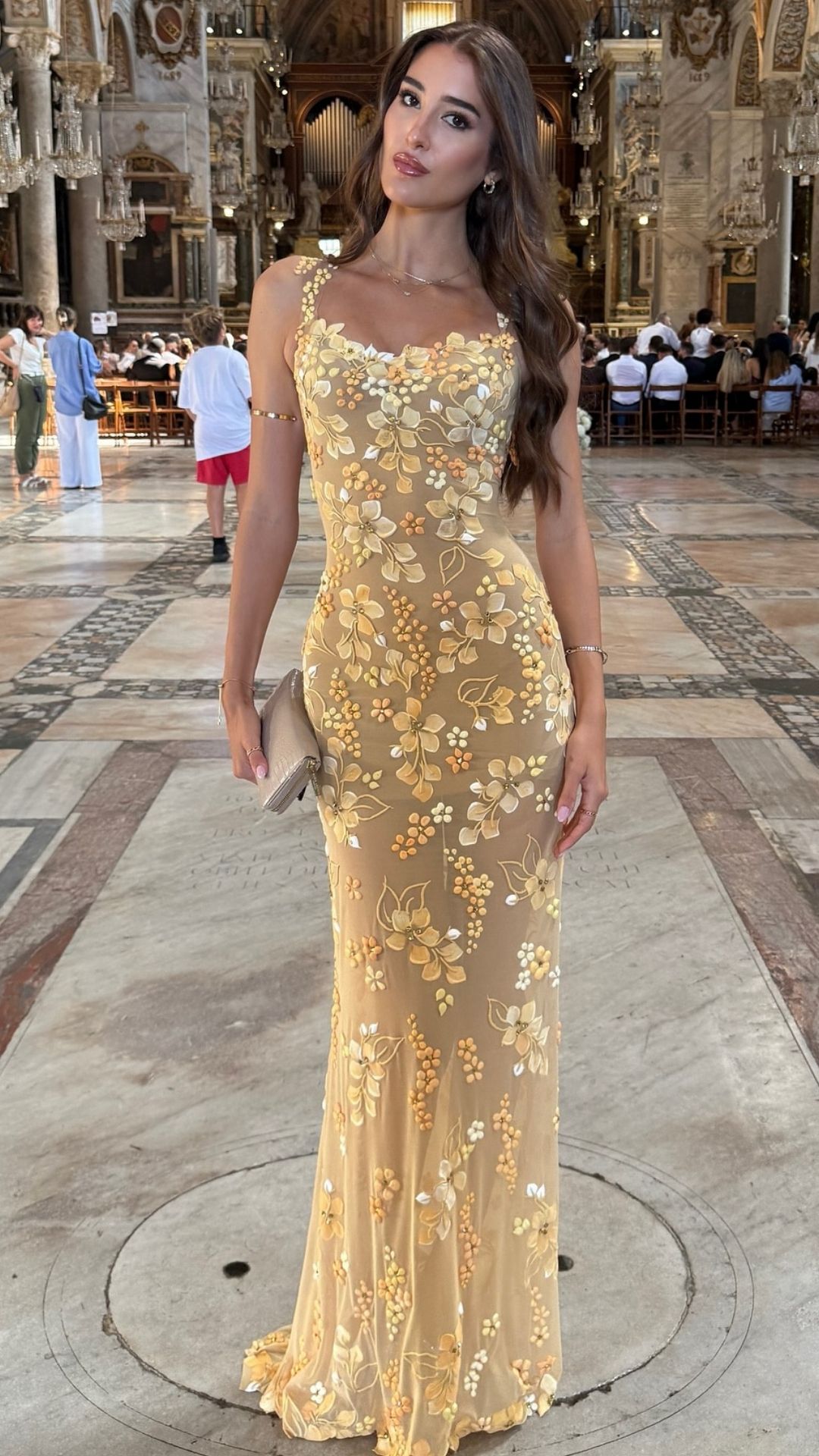 Perfect for upscale occasions like weddings or formal events, this dress captures attention while maintaining an effortless charm.