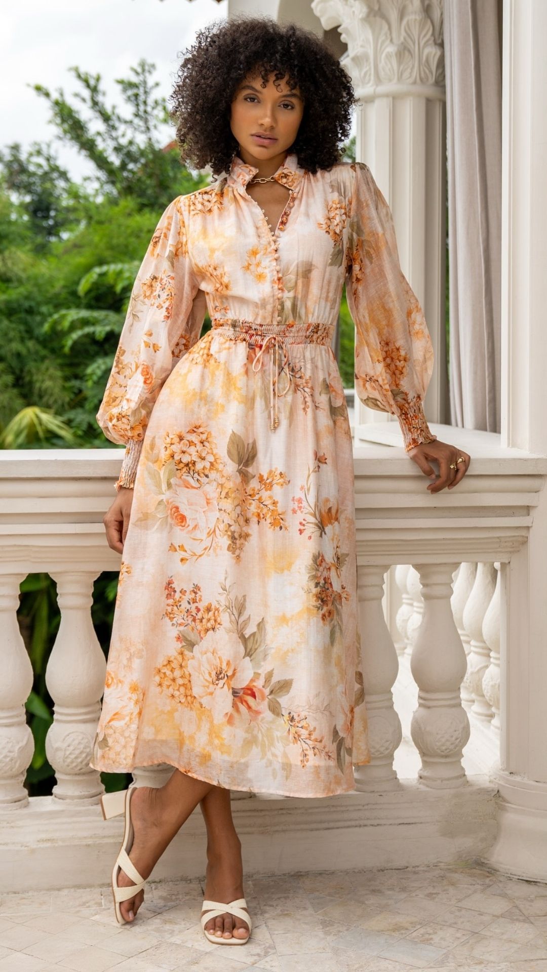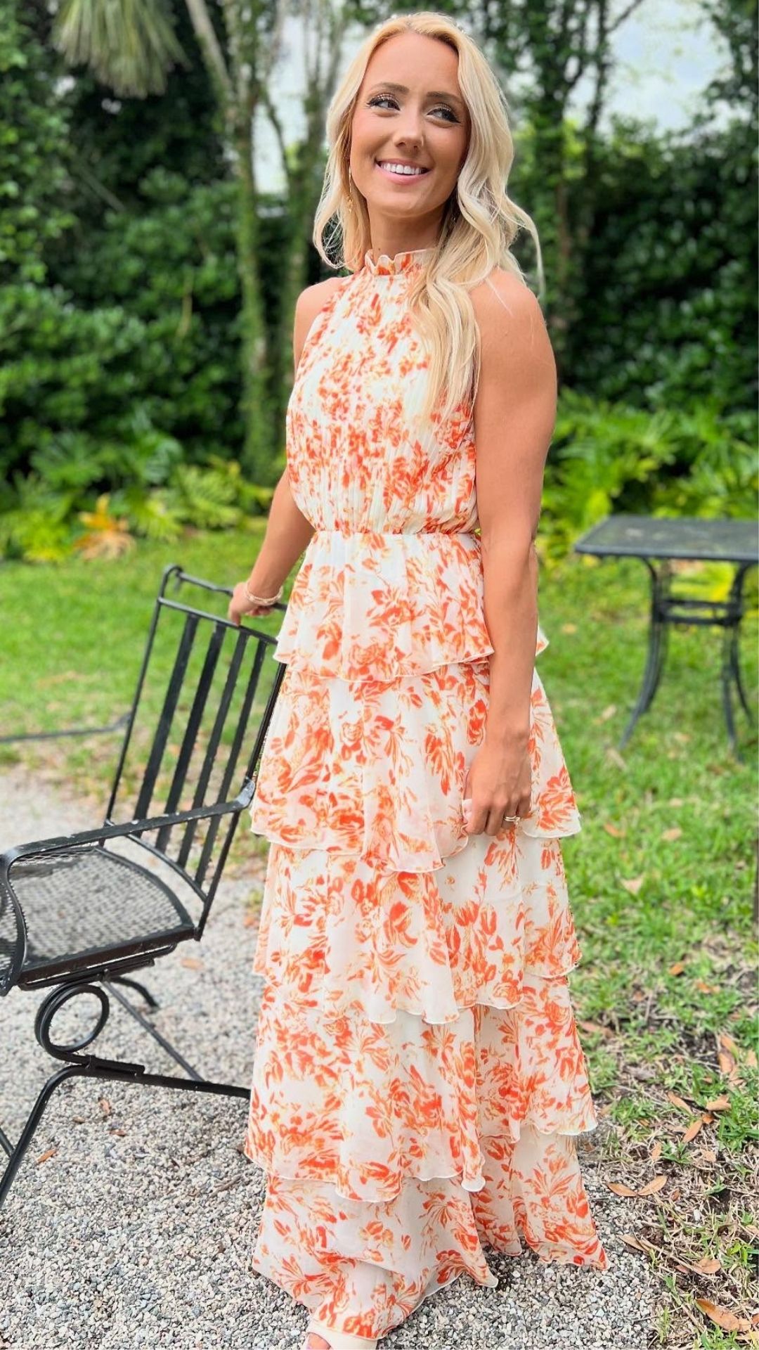 Floral Dress Outfit With Watercolor Patterns in Orange and Peach