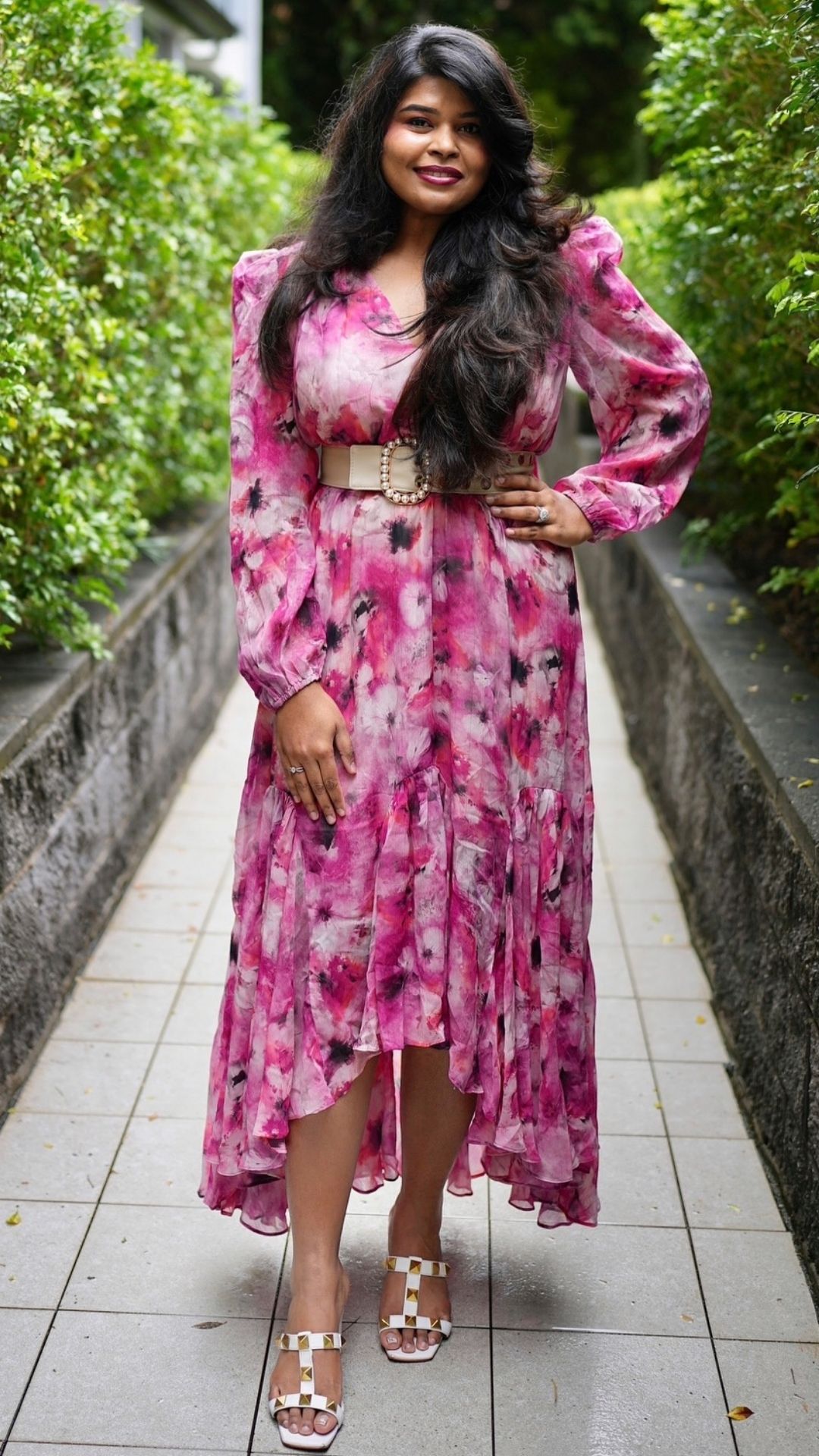 Floral Dress Outfit With Vibrant Pink Floral Pattern
