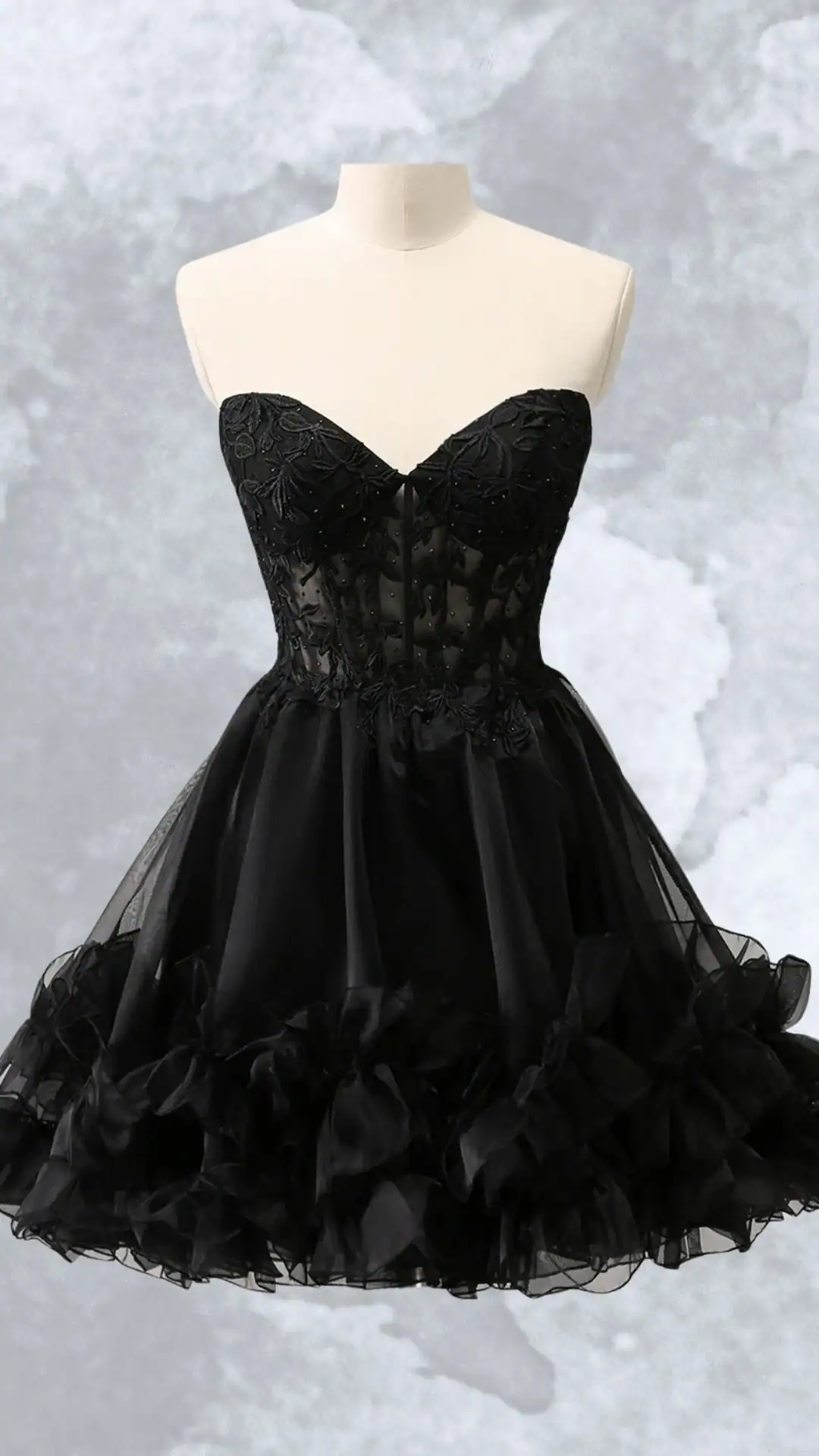 Whimsical Elegance: Fitted Sweetheart Bodice Meets Playful Flowy Skirt