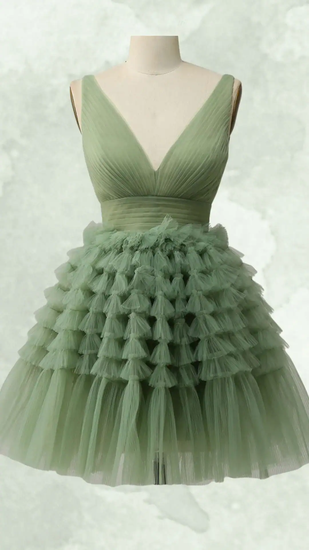 Flowing Elegance: Plunging V-Neckline and Tiered Tulle Skirt