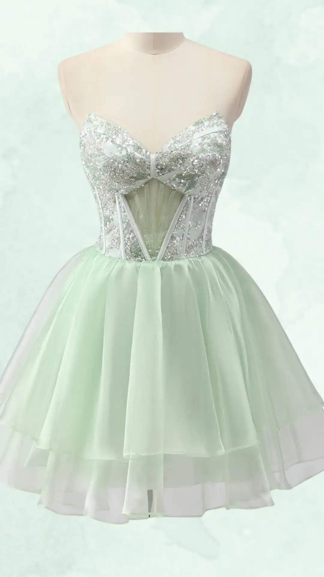 Mint Green Elegance with Sparkling Details and Twirl-Worthy Volume