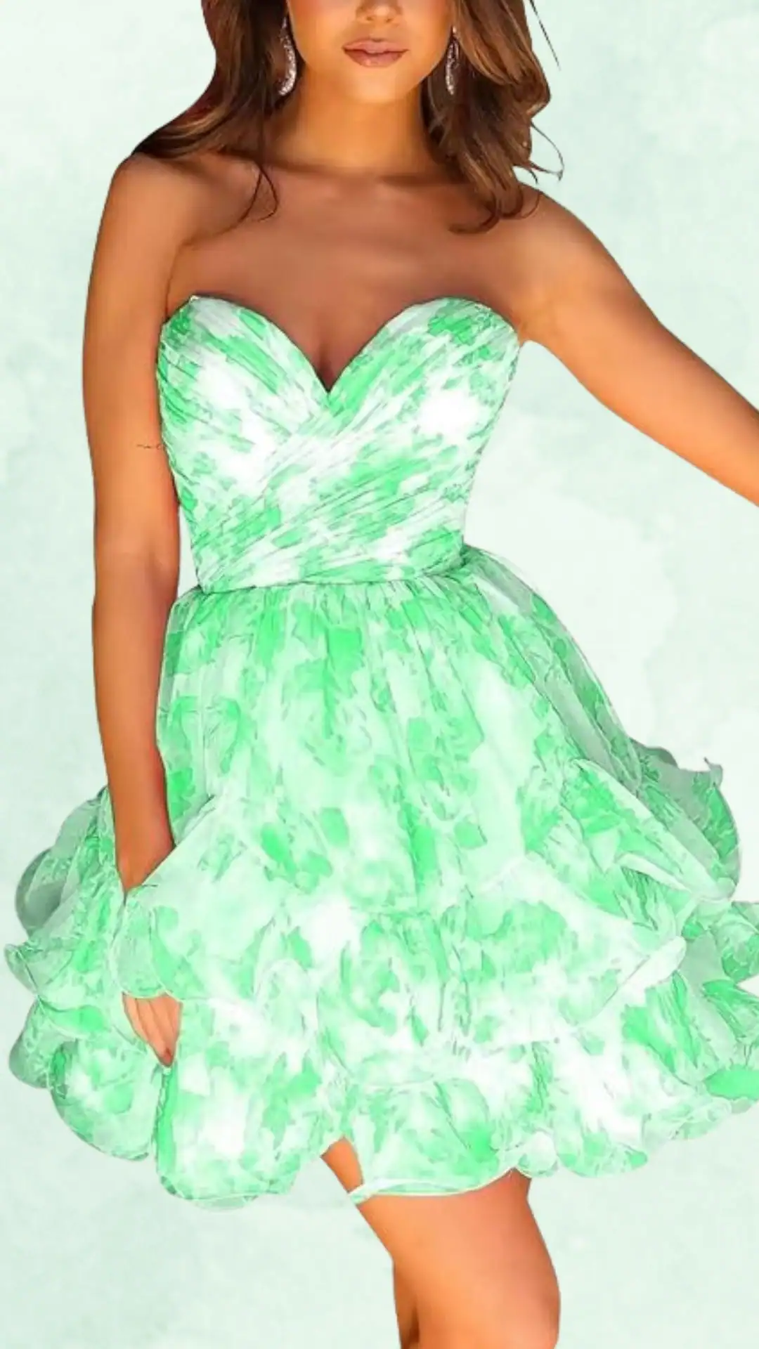 Vibrant Mint Green Watercolor Strapless Homecoming Dress