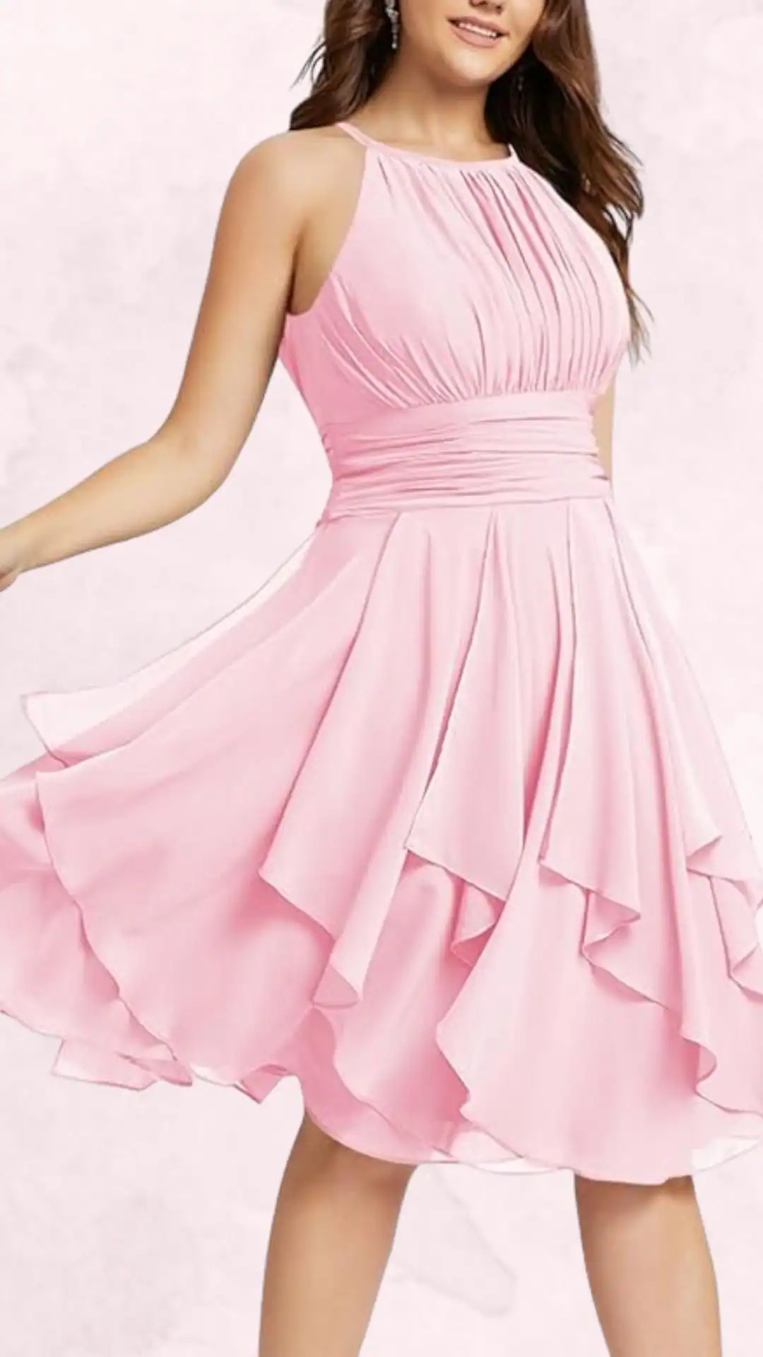 Light Pink Flowy Homecoming Dress with Cascading Ruffles