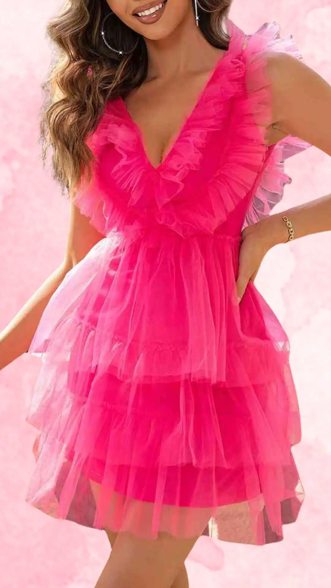 Vibrant Neon Pink Tiered Homecoming Dress