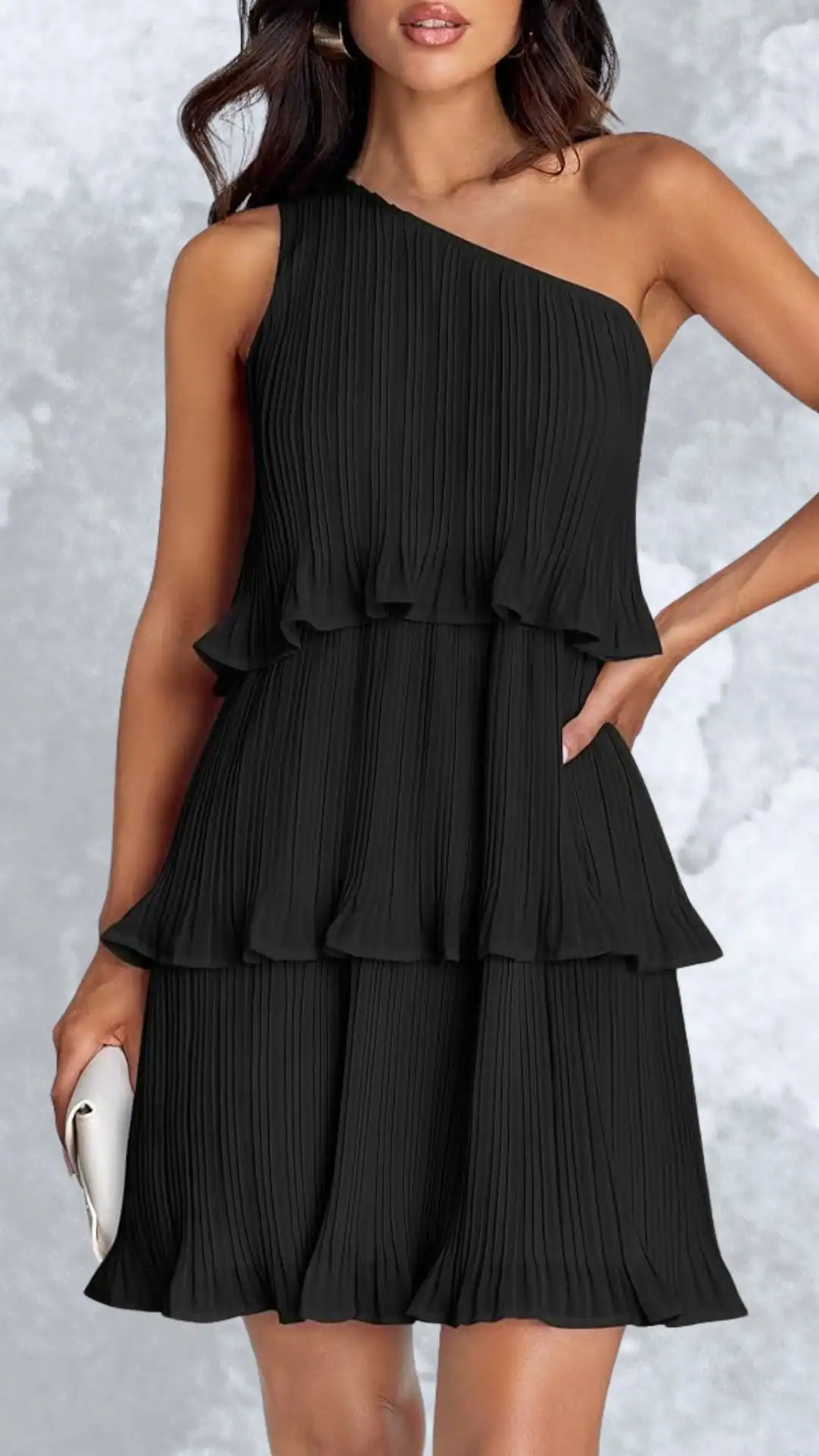 Classic One-Shoulder Black Dress with Ruffled Silhouette