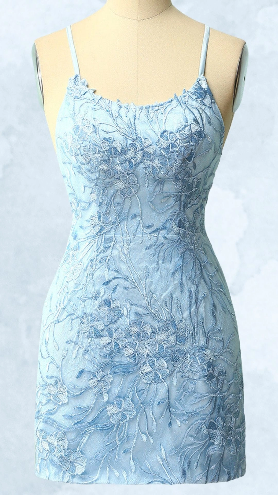 Ethereal Blue Lace Tight Homecoming Dress