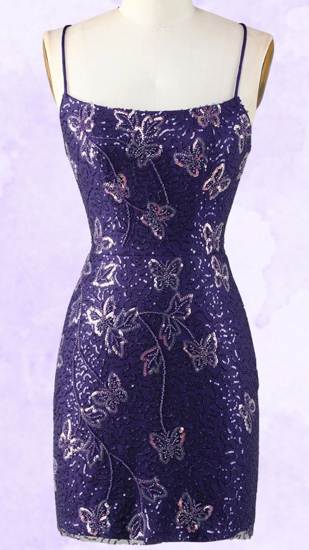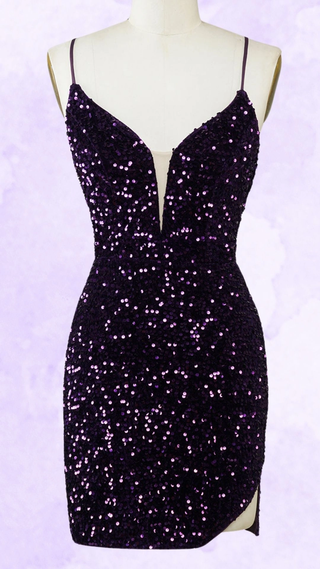Purple Sequined Spaghetti Strap Tight Homecoming Dress