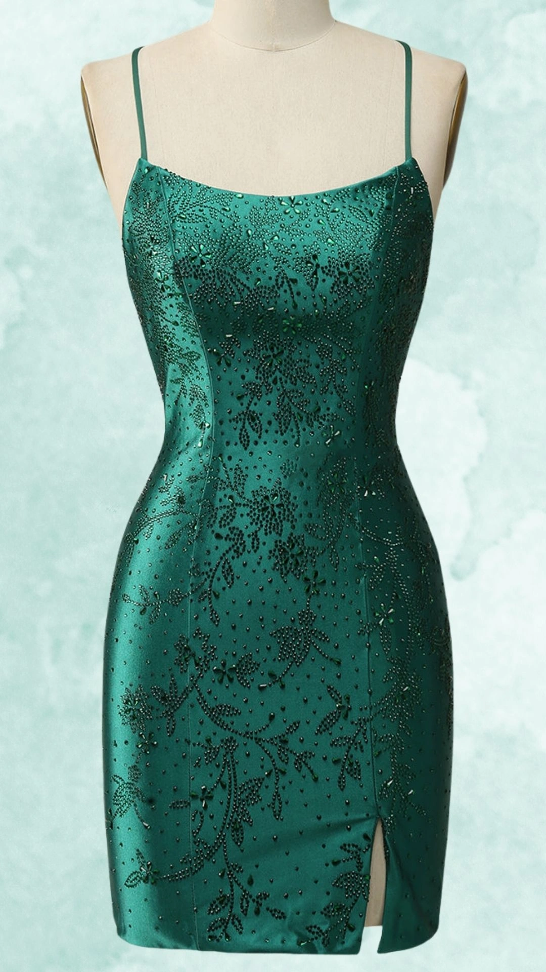Beaded Emerald Spaghetti Strap Tight Homecoming Dress