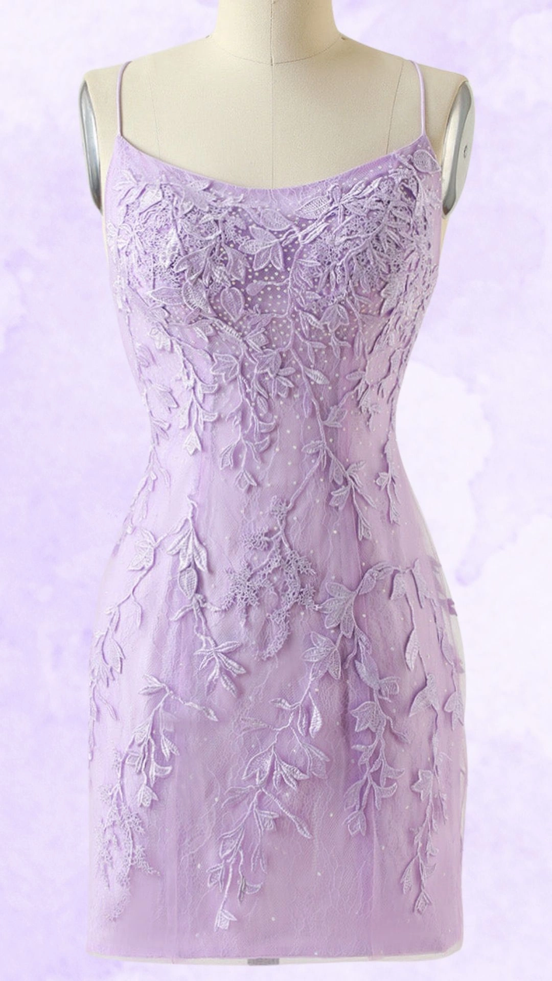 This stunning lilac homecoming dress delivers pure romance through its intricate floral embroidery and form-fitting silhouette.