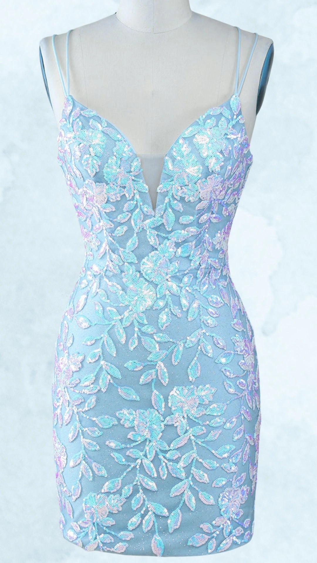 Light Blue Sequin Form Fitting Homecoming Dress