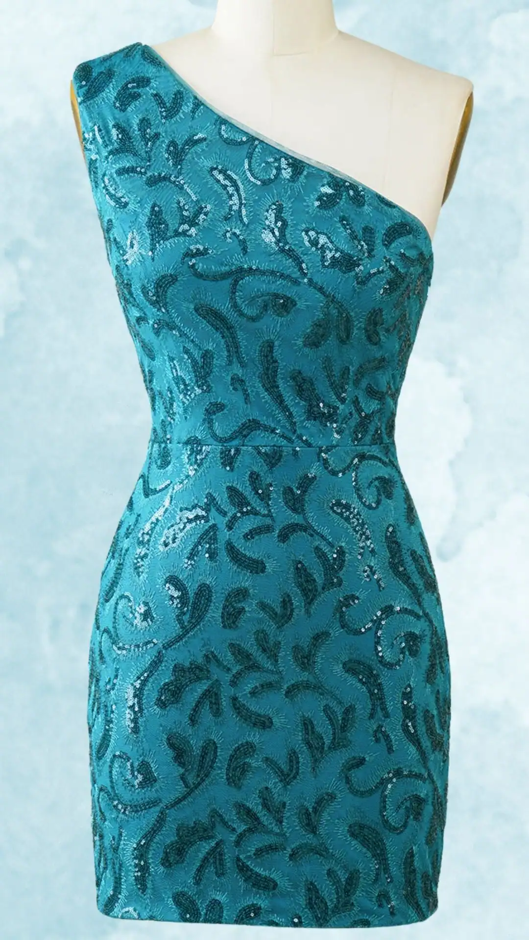 Sparkling Sequin One-Shoulder Curve Hugging Homecoming Dress