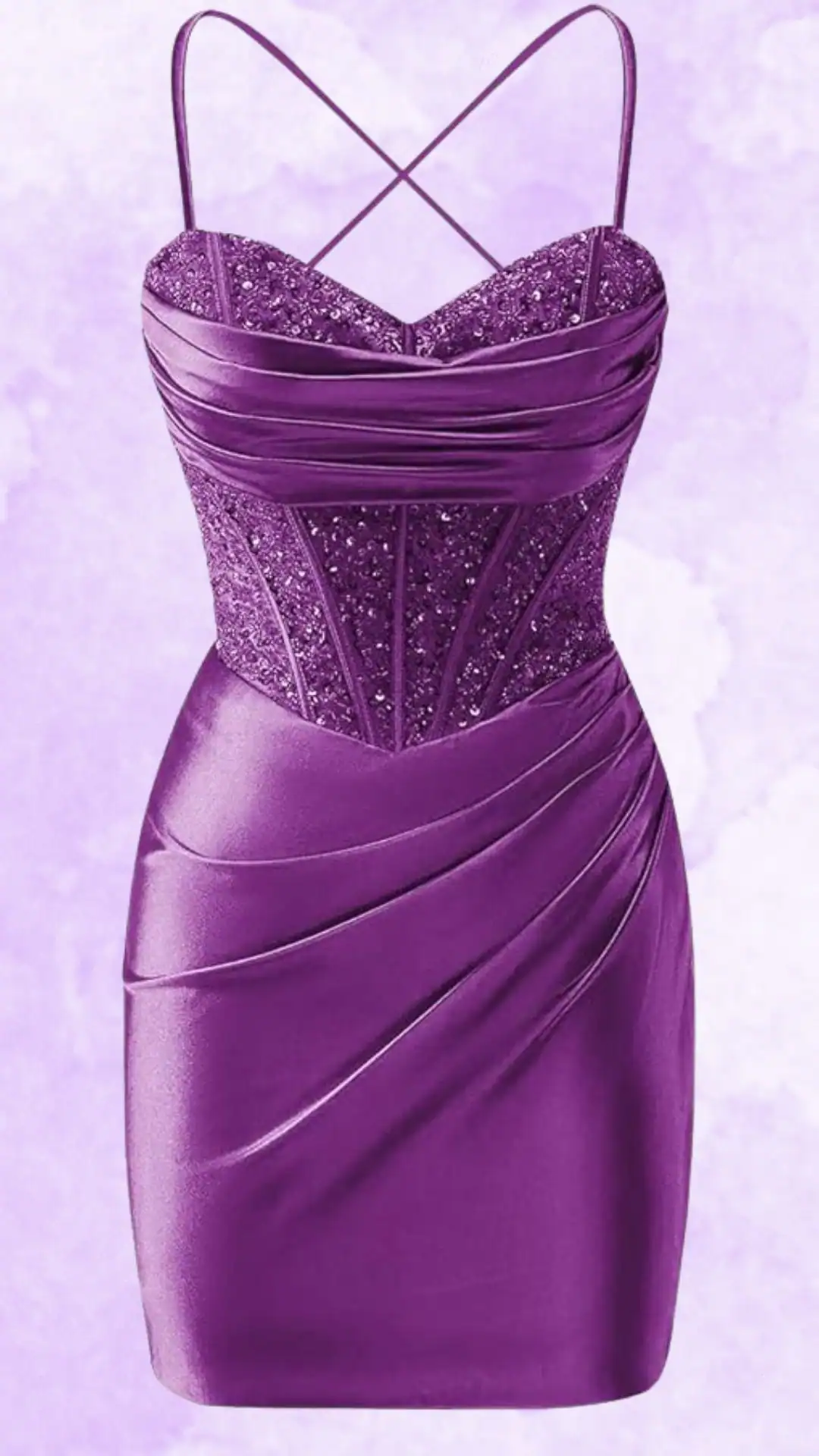 This stunning purple homecoming dress is a true statement piece that embodies sophisticated glamour and body-positive design.