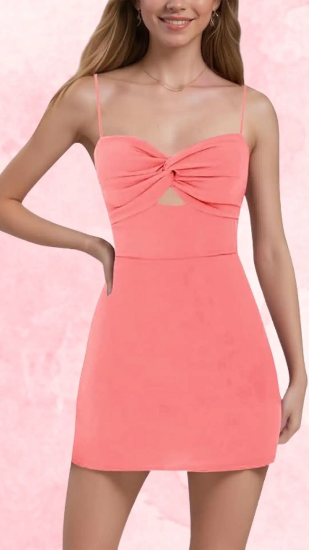 Coral Twist-Front Bodycon Dress: A Curve-Defining Statement Piece