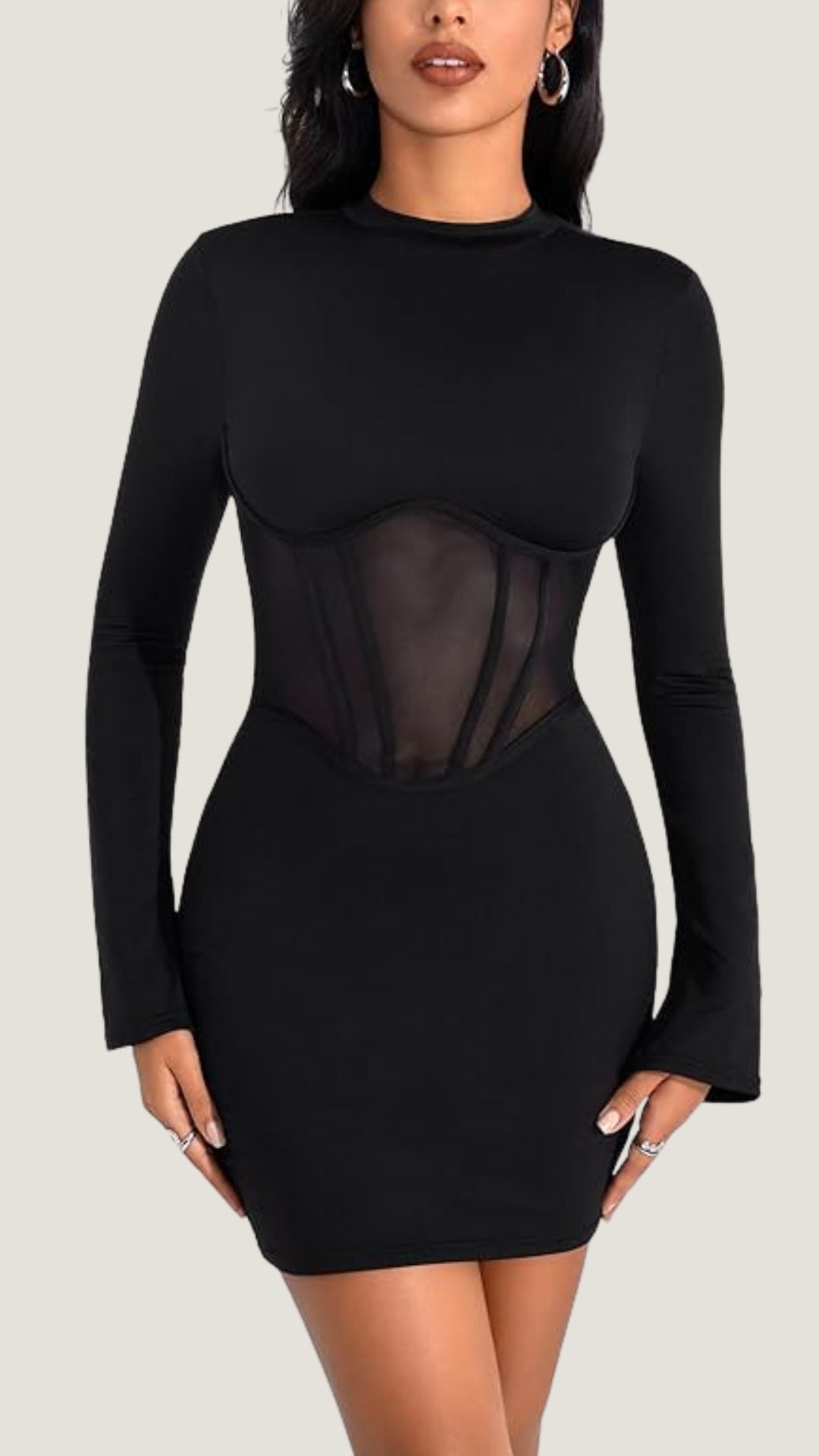 Long Sleeve Mini Dress With Sheer Corset Panel