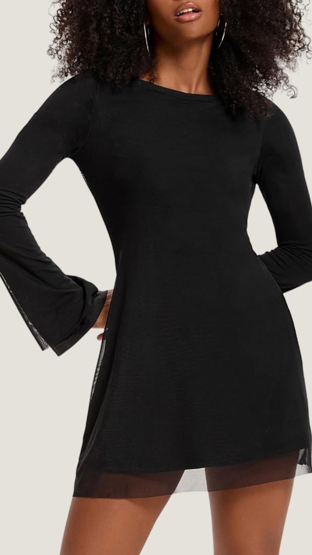 Long Sleeve Mini Dress With Sheer Flared Sleeves
