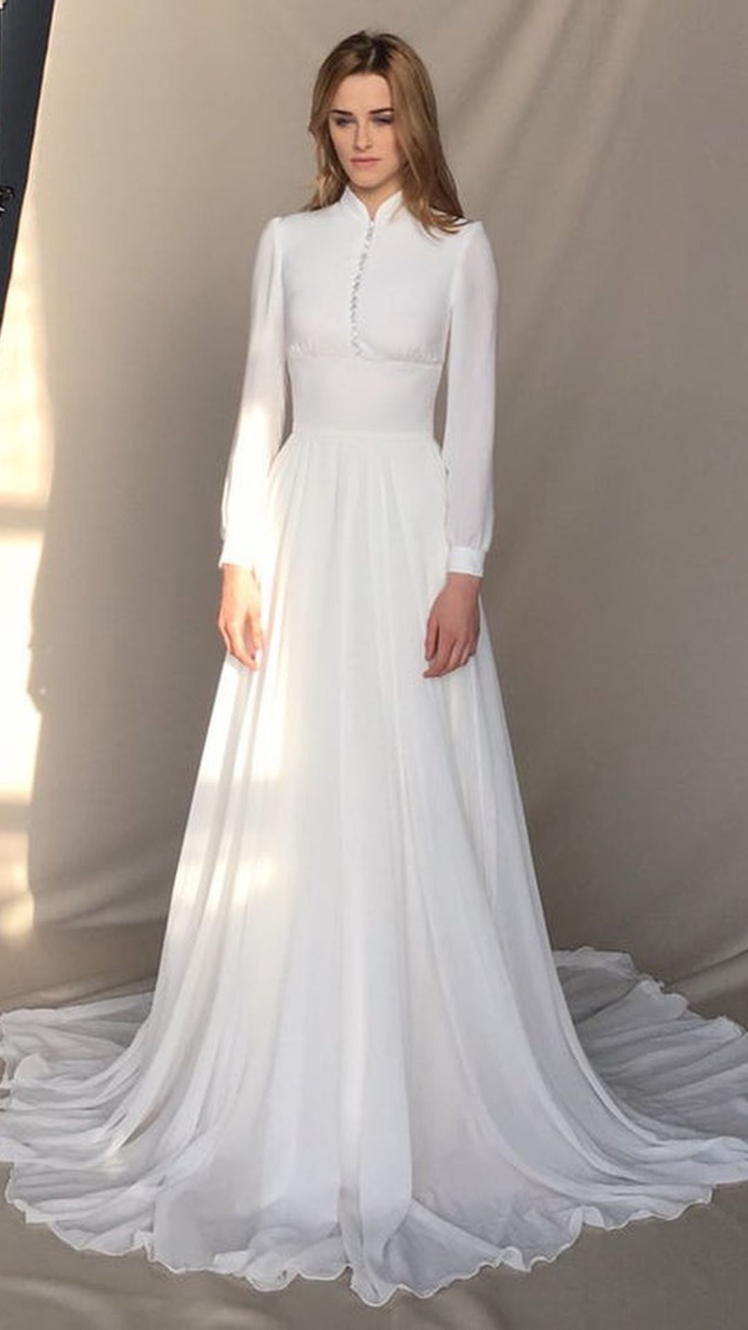 Long Sleeve Wedding Dress With Elegant Tapered Sleeves and Button Detailing