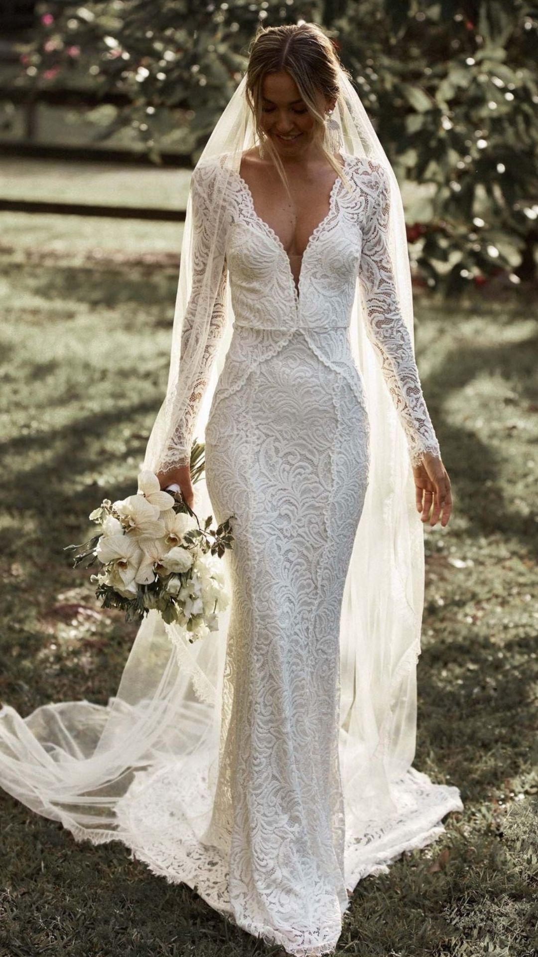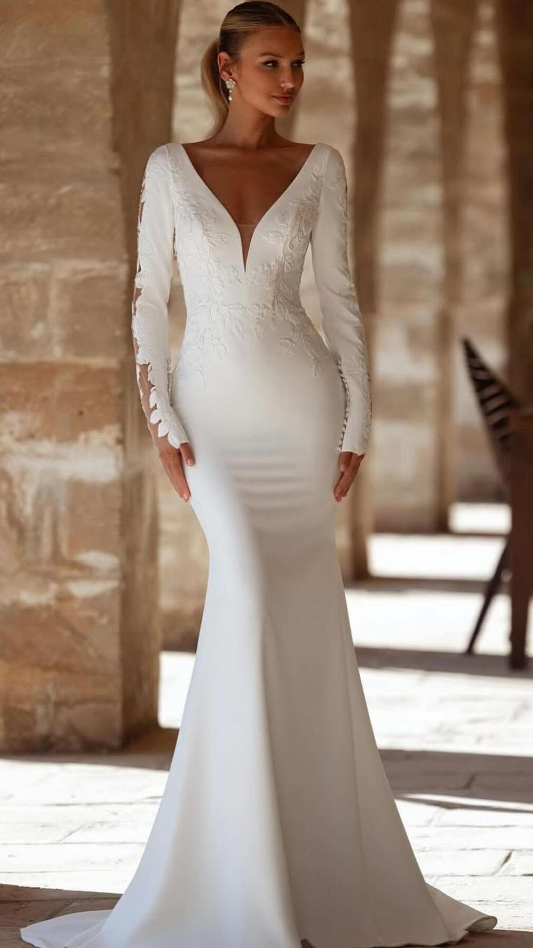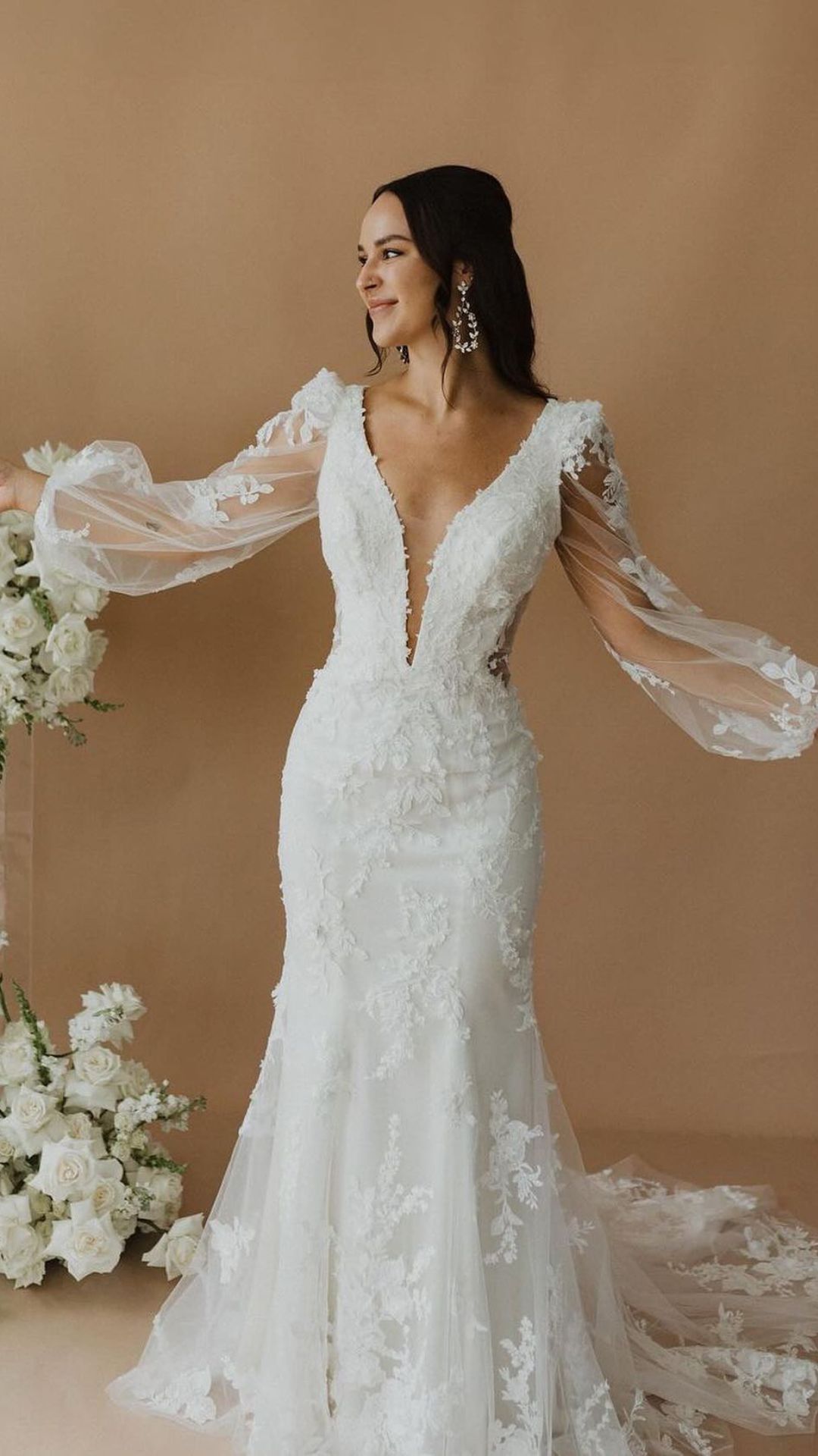 As part of elegant long sleeve wedding dress ideas for women, this design stands out for its timeless beauty and modern appeal.