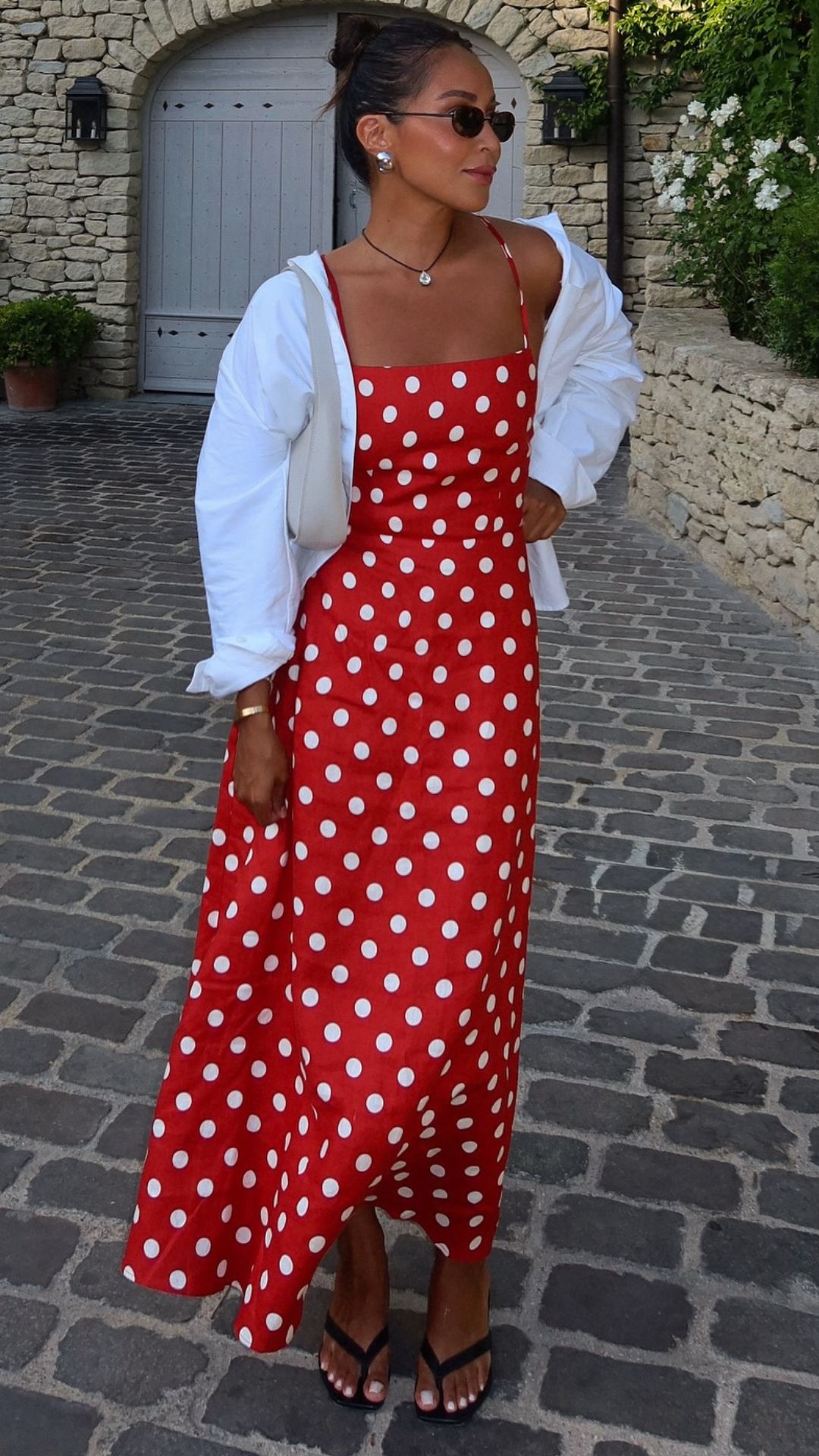 Discover how to style everything from a classic polka dot midi dress for professional settings to flowing dots dress options perfect for garden parties and brunches.