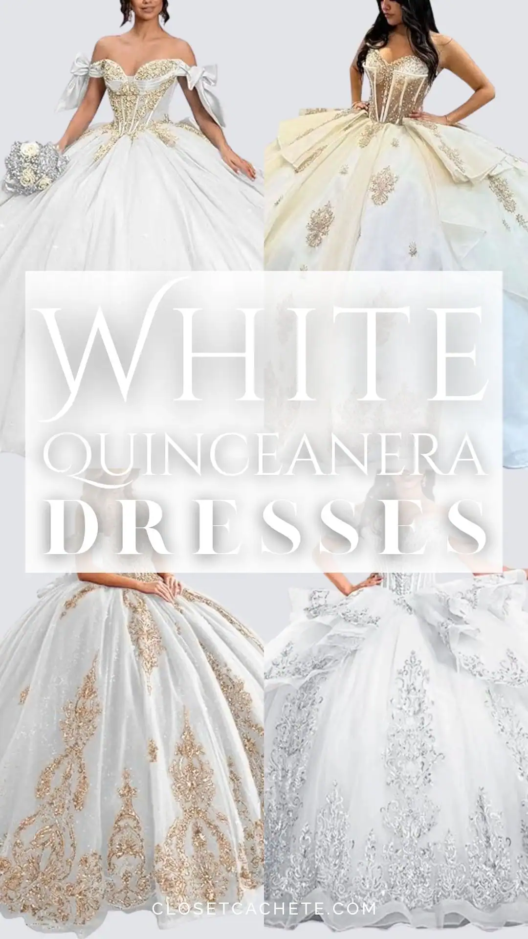 White Quinceanera Dresses: Off-Shoulder Ball Gowns, White Quince Styles & Gold Accents for Every Theme