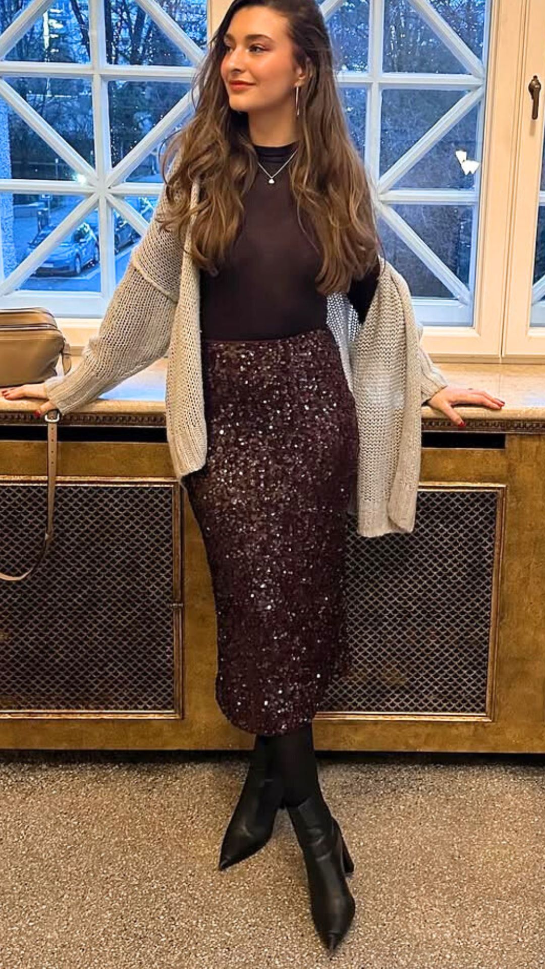 Winter Date Night Outfit With a Dazzling Sequined Skirt