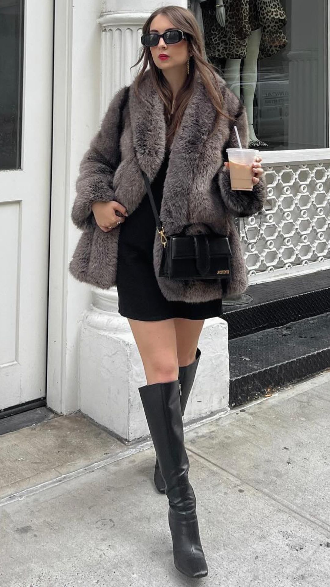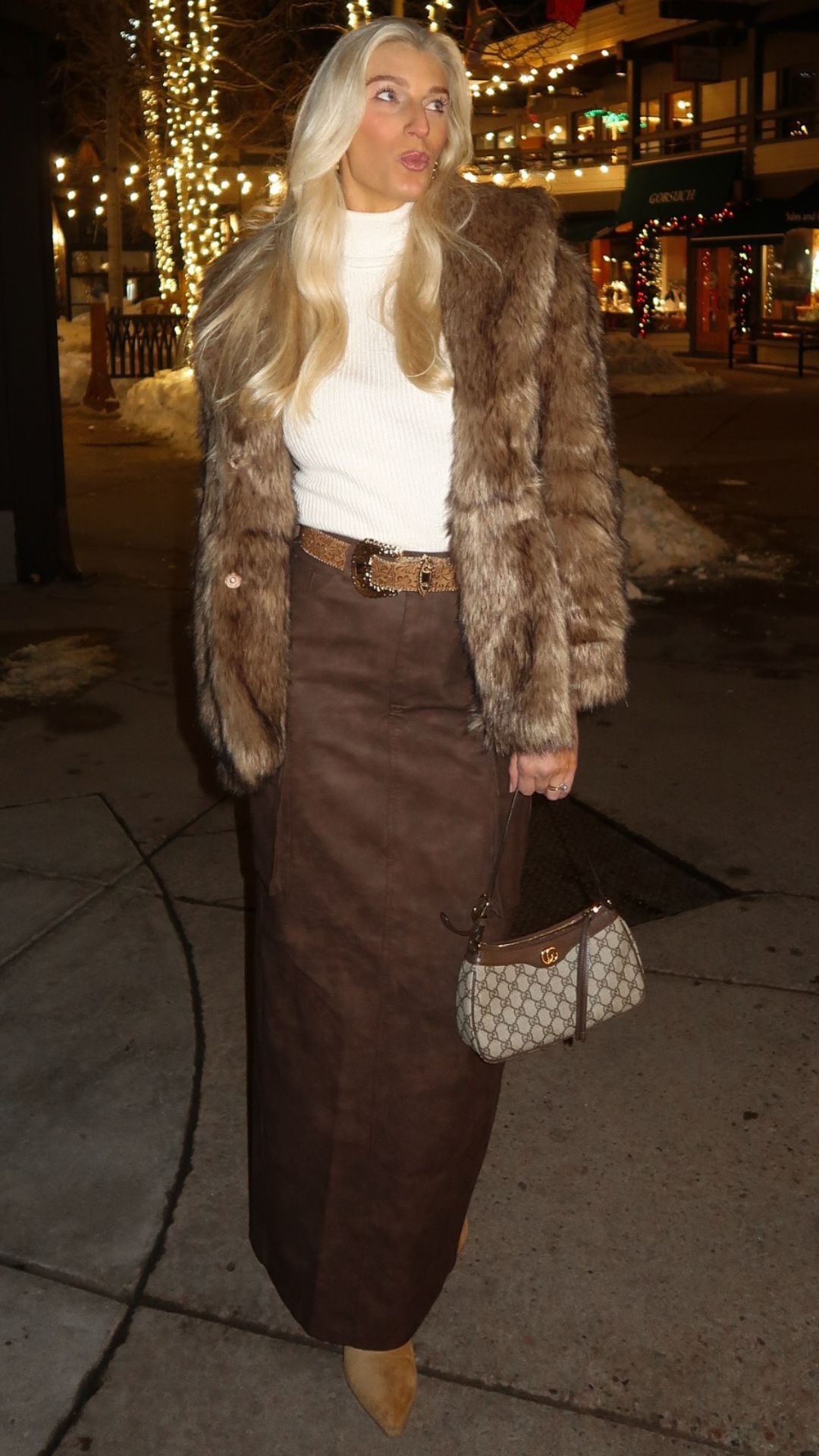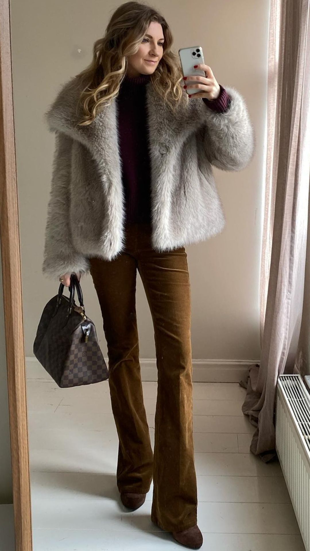 Perfect for a winter evening out or a cozy brunch, this ensemble showcases how faux fur can elevate any outfit to classic elegance.