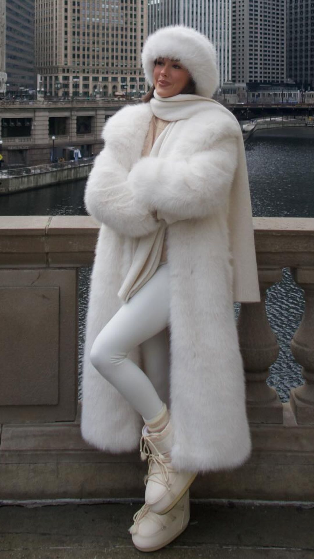 Faux Fur Jacket Outfit: Luxurious Long Coat in Pristine White