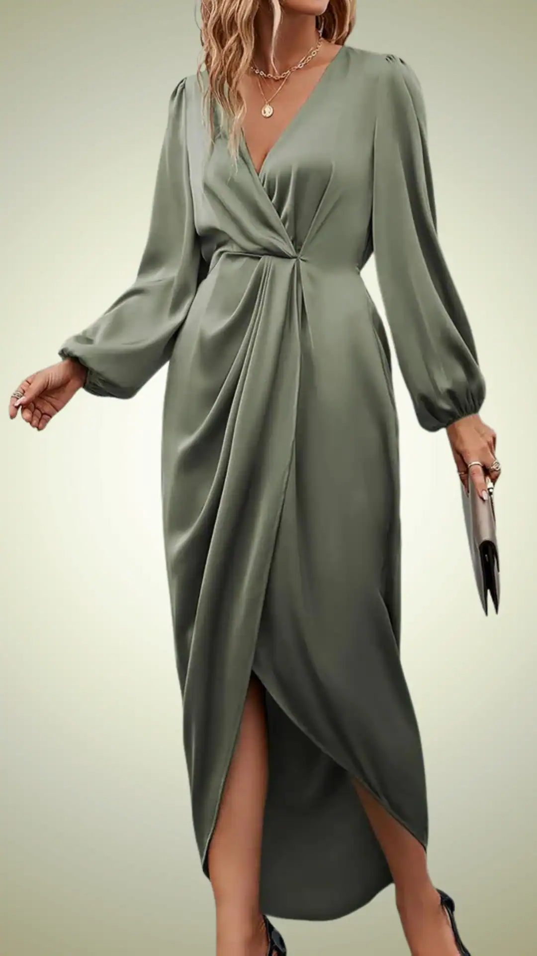 Elegant Sage Green Dress with Twist Detail and Thigh-High Slit